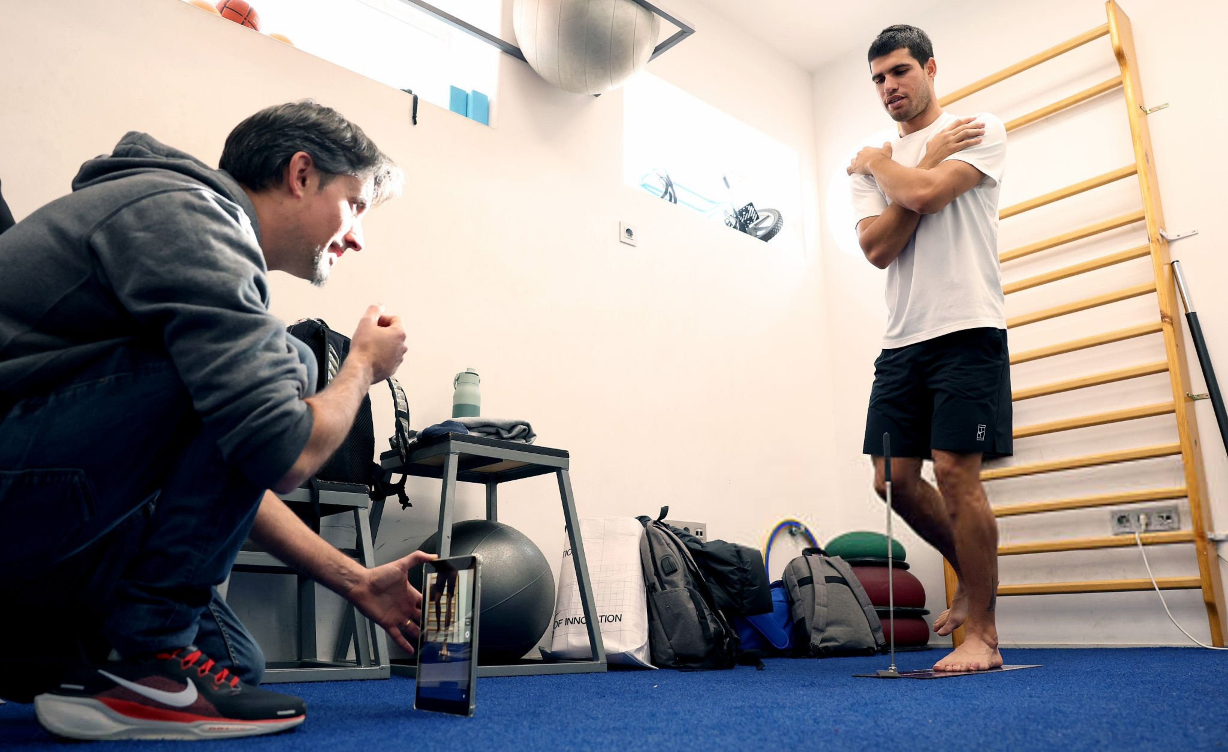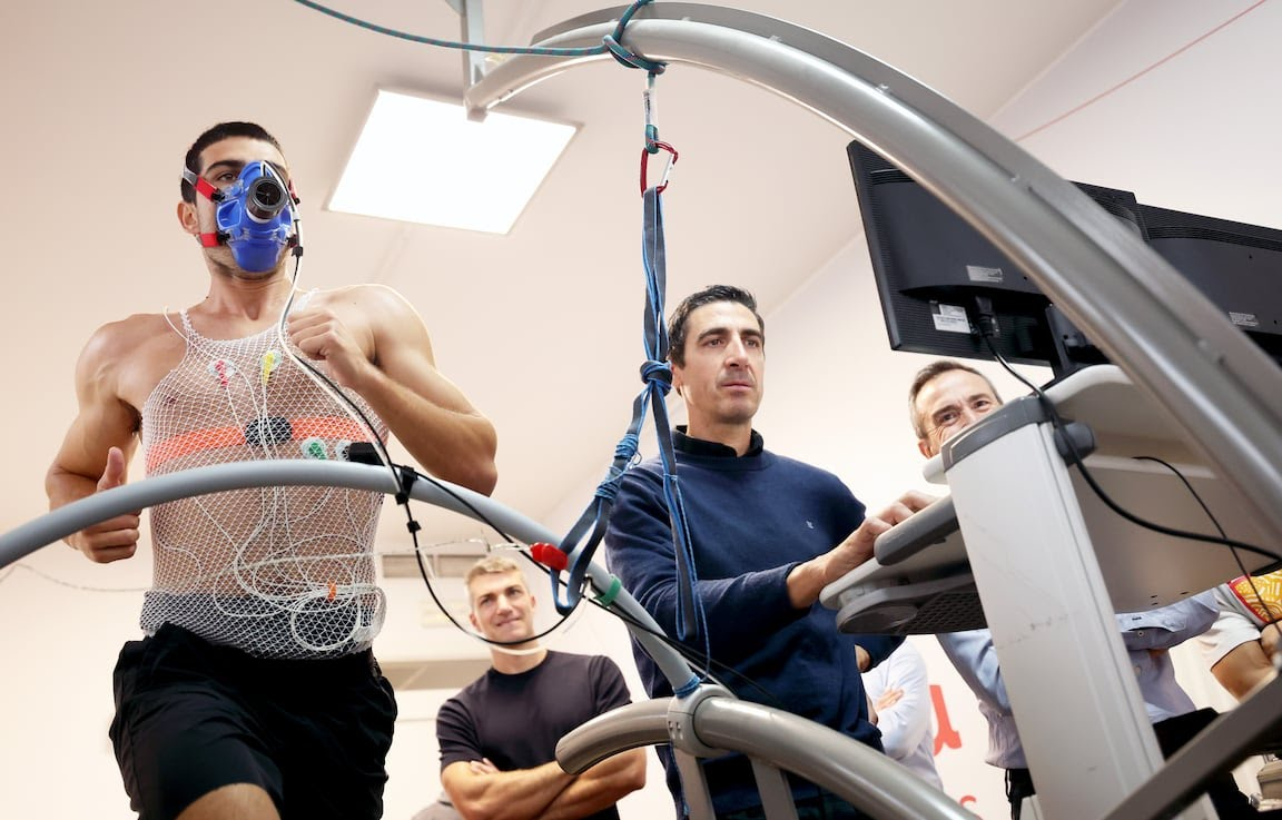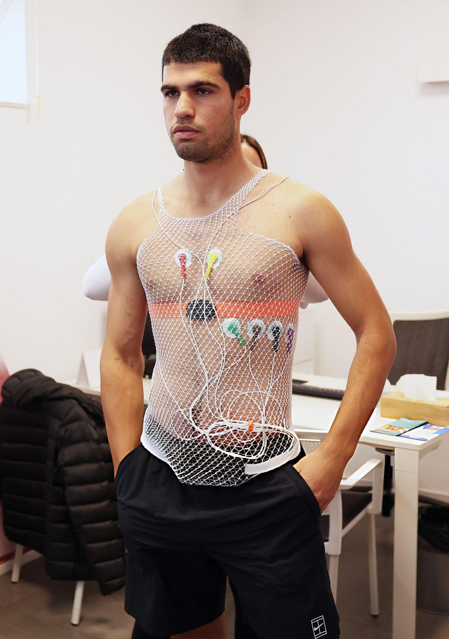 阿尔卡拉斯进行体侧,其中一项是最大摄氧量(VO2 Max)测试,用于测量身体在高强度运动中所能利用的最大氧气量~ 这对于制定2026年合适的训练计划以及了解他的身体极限至关重要。看图片,感觉体脂率上去了一点,毕竟是休赛期嘛。网球talking大会 网球