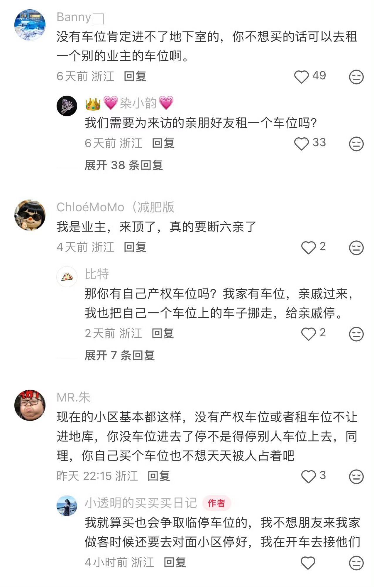 宁波业主吐槽没买停车位车子不能开进小区 ,大家在自己小区停车会选择买车位还是租车位?网友“小透明做买买买日记”吐槽:天了噜避雷宁波此小区因为神仙物业不让业主开车进入小区为了强制卖车位啥损招都想出来了嘛?无奈业主无法回家,只能车停大门口了买此小区需断六亲,来了没有买车位的一律不许进