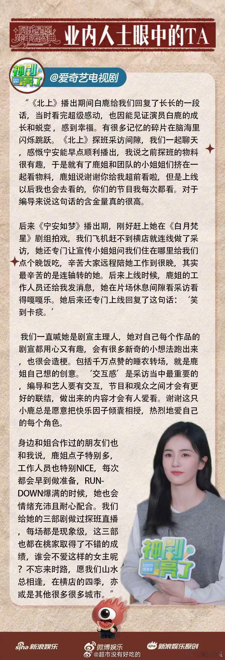 爱奇艺眼中的白鹿,又被🥝夸爆了