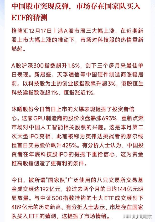 今天A股大涨的消息面原因由于放出来了,原来是国家队又入场了 今天A股下午突然的一波上涨,完全把市场的情绪带起来了,至于上涨原因到现在才放出来。 原来是国家队对ETF下手,可以说完全超出了日平均购买额度,今天直接买入的创出历史新高,这是一个非常振奋人心的事情。 由于最近A股确实走的有点颓废,国家队试时入场也是可以理解。这波带动了市场的情绪,成交量直接放量了800亿,要知道上午的时候还缩量1300亿,也就是说下午这一波直接放量了2100亿。 这波带动市场太关键了,明天情绪起来了,赚钱效应也就来了。