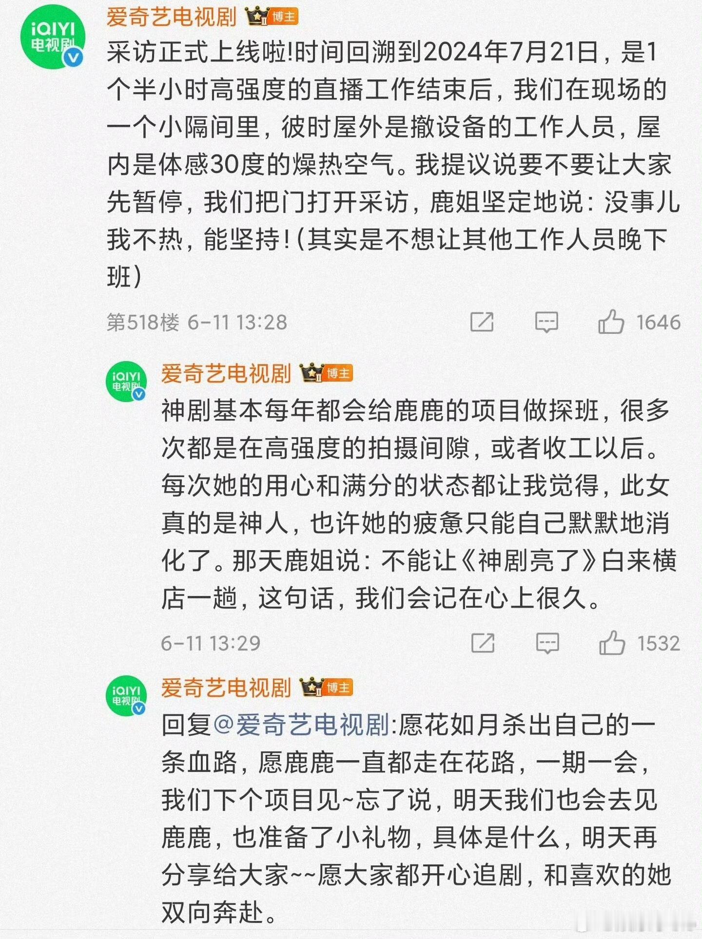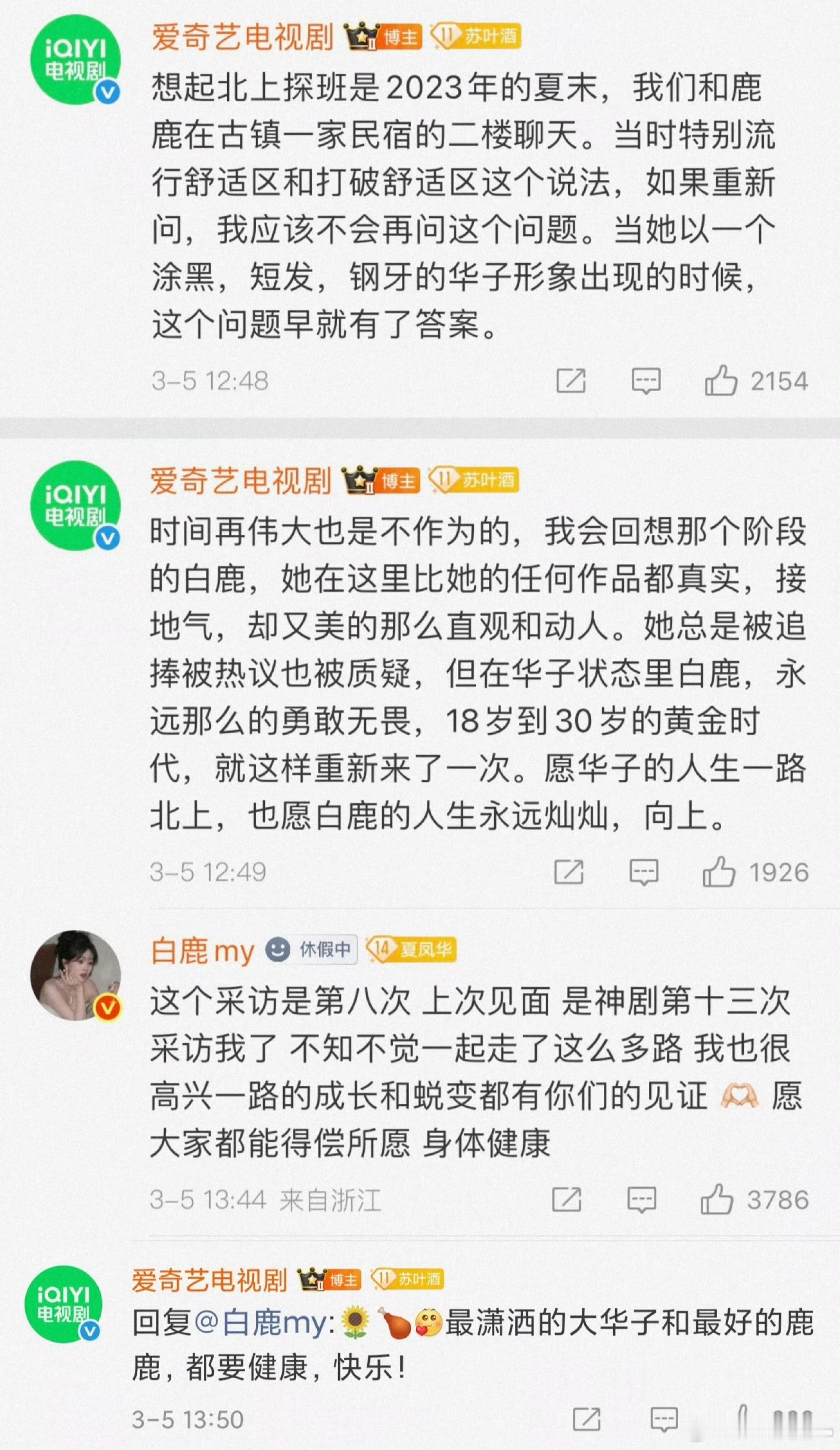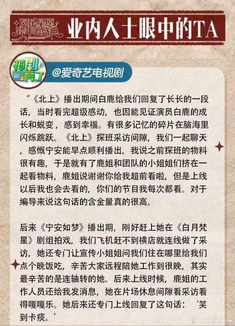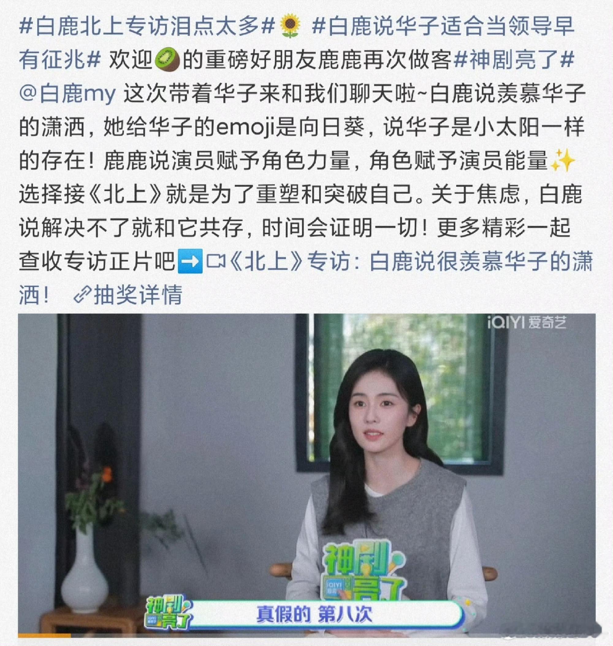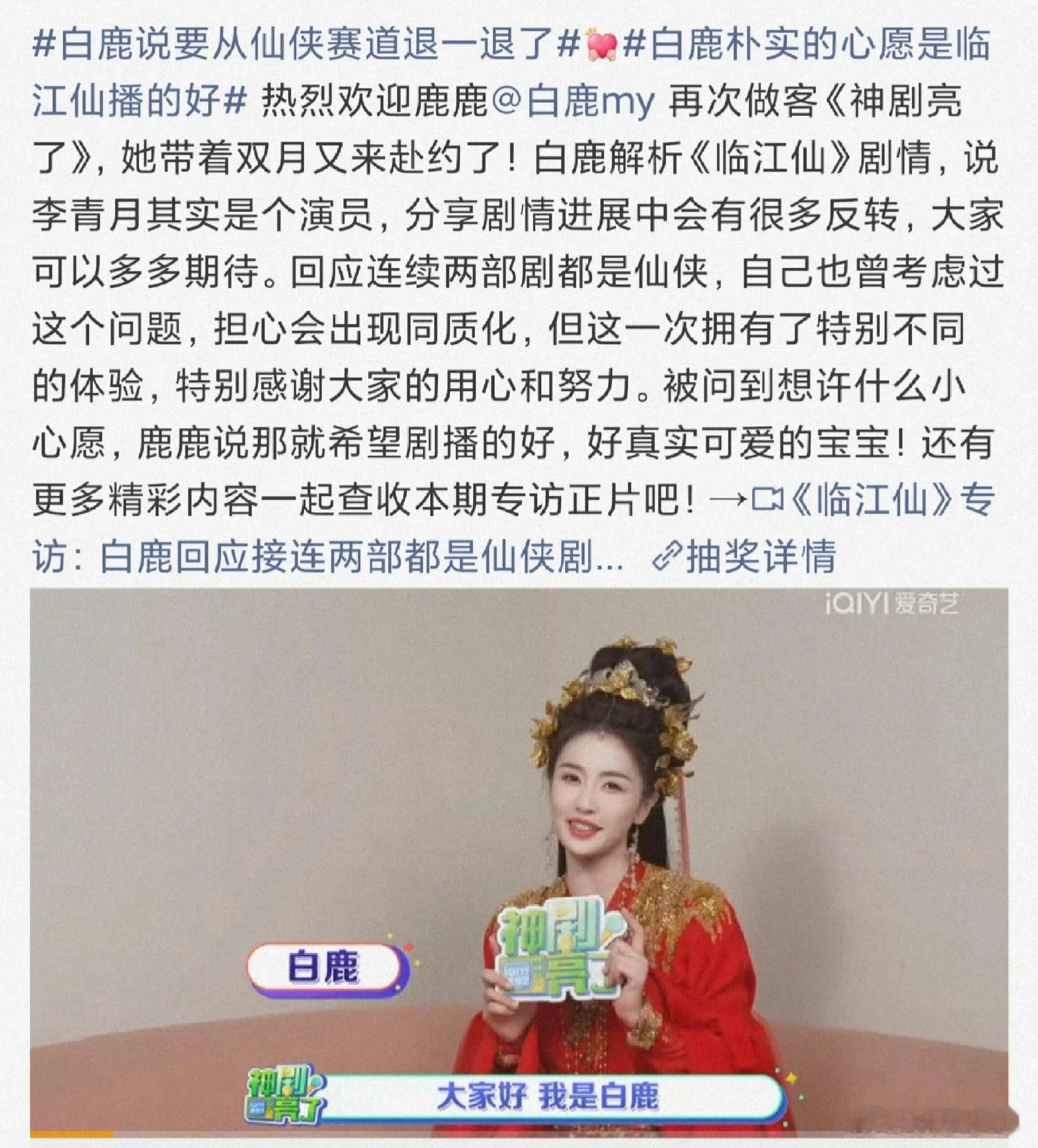 爱奇艺认证白鹿千万点赞剧宣创造者“我们一直喊她剧宣主理人,她对自己每个作品的剧宣都用心又有趣,会有很多新奇的小想法跑出来,也很会造梗”
