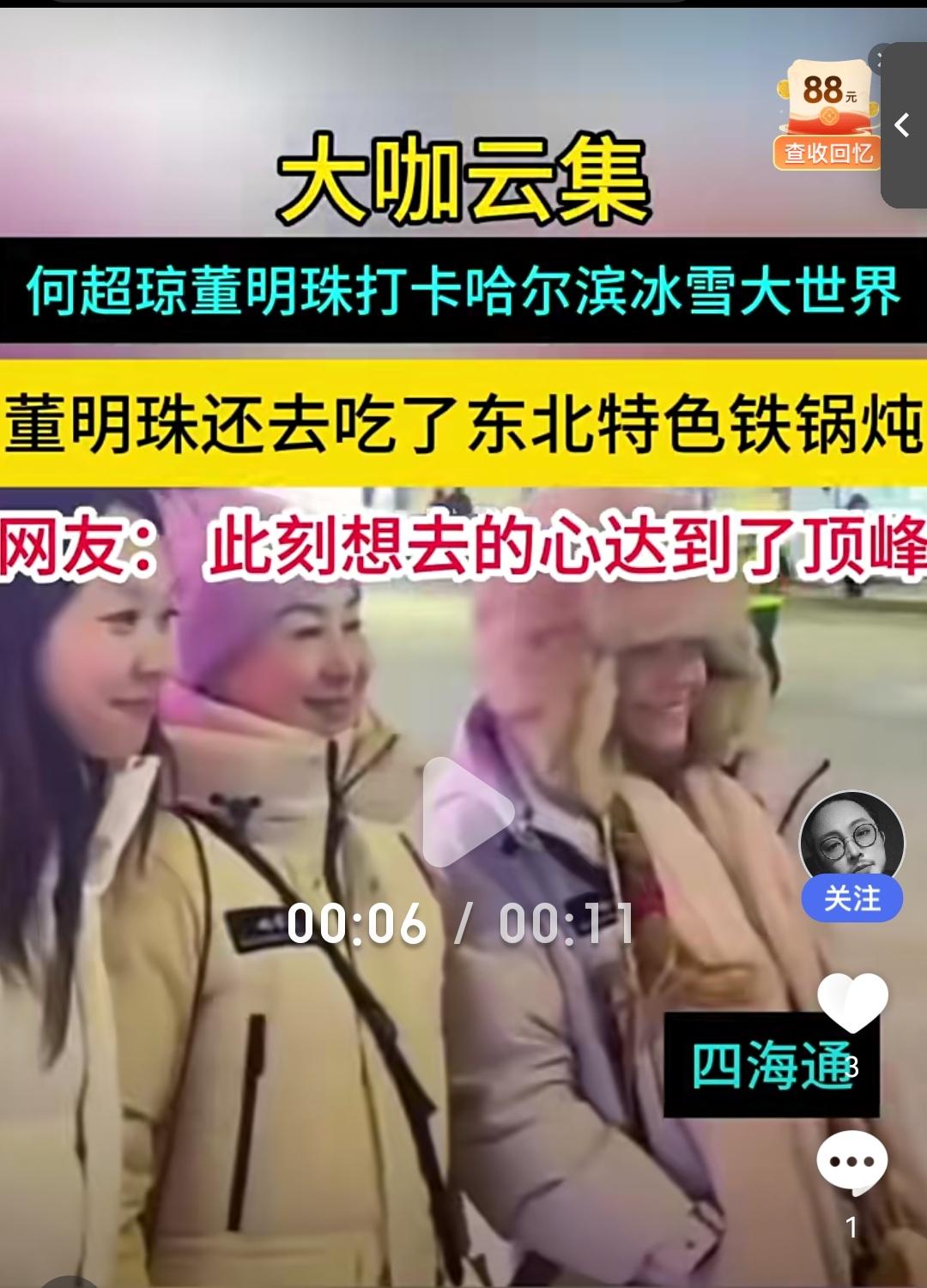 何超琼与董明珠现身哈尔滨冰雪大世界,两大“女王”同框太抢眼!两位身穿白色羽绒服,在120万平方米的冰雪王国里逛得不亦乐乎。董大姐更是入乡随俗,不仅体验了热气腾腾的东北铁锅炖,还潇洒地坐冰雕上打卡——这反差感绝了! 都说南方企业家会赚钱,没想到玩雪也这么认真!一个赌王千金,一个商界铁娘子,居然在零下20℃的冰天雪地里笑得像孩子。看来冰雪的魅力真不分南北,更不分身份啊~这画面,简直是“商业巨头の冬日治愈番”! 网友辣评:格力要不要考虑研发个“铁锅炖专用空调”?何超琼董明珠同游冰雪大世界