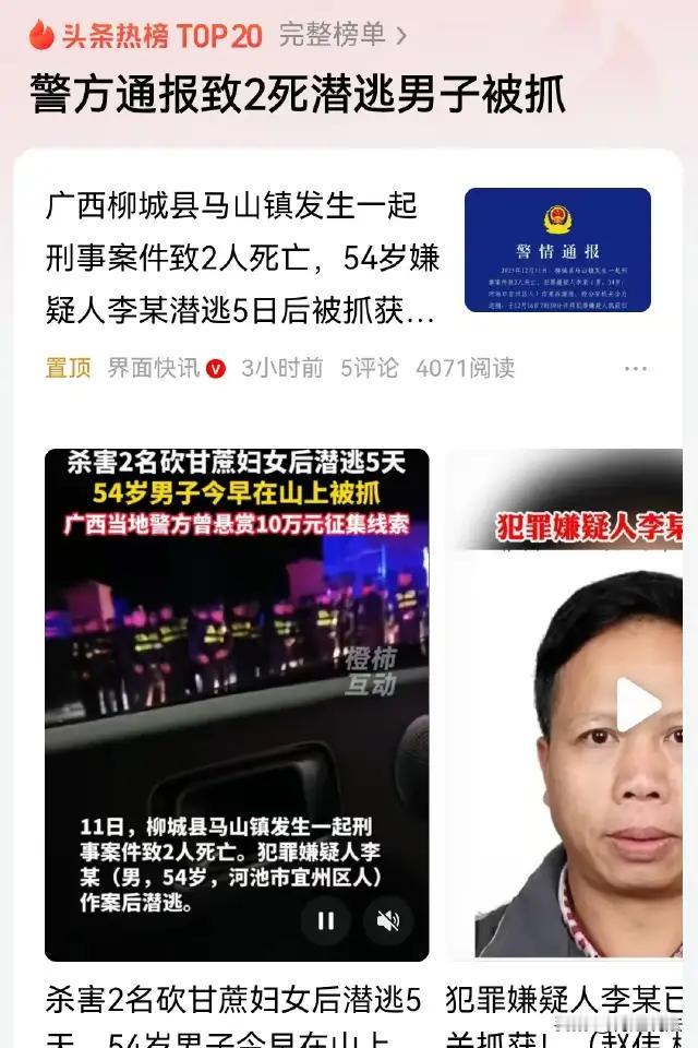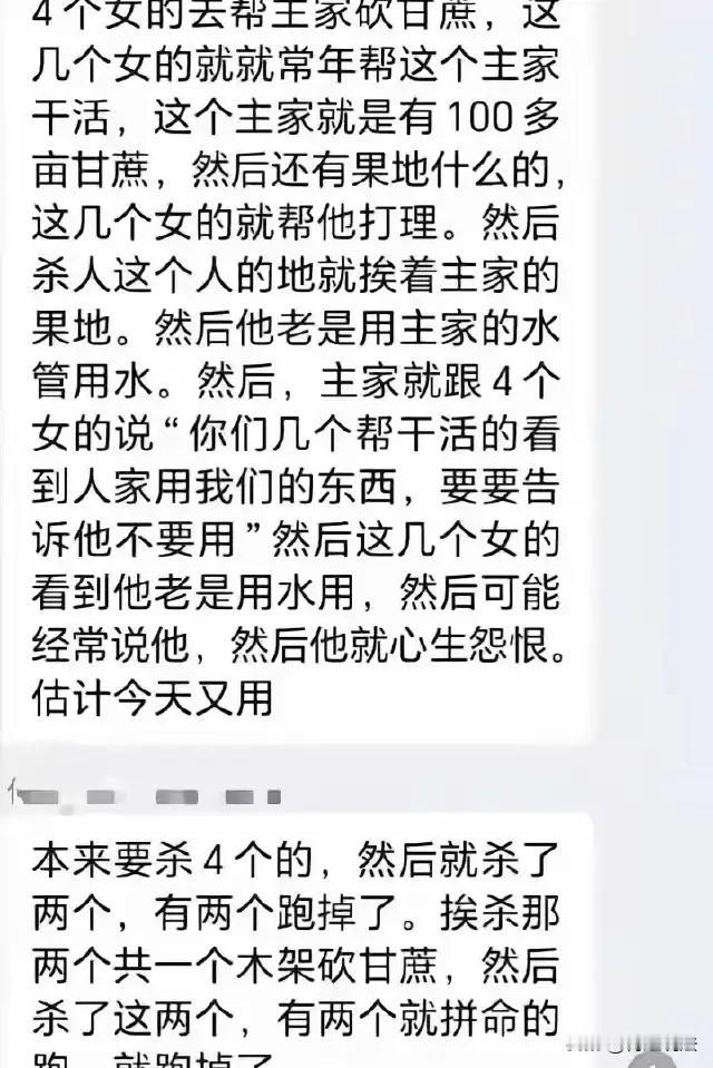 这起发生在广西柳城的案件,刚刚迎来了关键进展。嫌疑人李某因与两名正在砍甘蔗的妇女发生用水矛盾,竟然一怒之下持刀砍人,致两名妇女受伤后潜逃。警方多日围追堵截,终于将他抓获归案,为受害者和社会交上一份答卷。 表面看,这是一场因“用水”而起的普通邻里纠纷。但透过这一事件,我们不得不深思:人与人之间的信任和包容为什么如此脆弱?竟然因为生活中一件“水”这么看似微不足道的事情,引发了暴力冲突? 在农村地区,用水矛盾并非罕见,水资源分配、使用习惯差异、沟通缺失往往成导火索。此案反映了基层治理、乡村社会矛盾调解的薄弱,也暴露出部分人遇事缺乏冷静与理性的痛点。“一滴水引发的一场风暴”,只因相互理解和耐心缺席。 案件中的李某,逃避法律制裁的行为也提醒我们,面对冲突不能躲避,更不能以暴制暴。法律是社会公平正义的最后屏障,只有依法处理问题,社会才能真正和谐安定。 对于受害的两位妇女,我们希望她们能够早日康复,重拾生活的安心。也期望当地政府和社区,能以此为戒,加强矛盾排查和调解,完善用水管理机制,避免伤害。持刀事件 伤人案