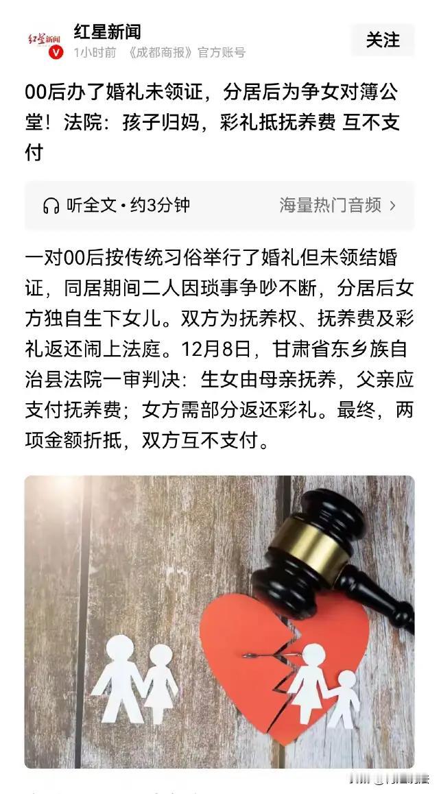 甘肃东乡县,年仅18岁的陈某和马某曾经怀着满腔热情举办了婚礼,然而因为没有办理正式的结婚登记,这段感情很快因矛盾频发而破裂。陈某回到娘家生下了他们的女儿,但因“无证婚姻”,孩子迟迟无法办理户口登记,生活变得异常艰难。 出于责任和权益的考虑,陈某将马某告上法庭,要求取得女儿的抚养权,并请求马某每月支付2000元抚养费。令人意外的是,马某却不仅反驳了陈某的诉求,还以自己家庭条件更好为由,争取将女儿判给自己抚养,使得这场原本应该以孩子利益为核心的诉讼,变成了家长间的权利与责任博弈。 更让争议激化的是围绕13万元的彩礼问题。马某称,彩礼由他家出资共13万元,但陈某只归还了3万元,剩余部分仍应退还。彩礼纠纷夹杂在亲子权益之中,暴露出传统婚俗与现代法律观念的冲突,也让人深刻反思当今社会中“婚姻、家庭与经济利益”的复杂交织。 这起案件背后,凸显了几个不能忽视的社会现象:首先,无证婚姻给双方带来法律保障的缺失,最终伤害最深的却是孩子;其次,彩礼依然是家庭纠纷的重要导火索,提醒我们应促进婚姻观念的现代化转变;最后,孩子作为“无辜者”的权益如何得到最大保护,是法律与社会必须优先解决的问题。 或许,这场纷争对陈某和马某来说,都是一课“责任与担当”的深刻教训。社会各界应该呼吁完善相关法律法规,为无证婚姻、儿童权益设立更明确的保护机制。更希望所有父母,在爱与责任之间做出正确选择,不要让孩子成为无辜的受害者。 彩礼纠纷 彩礼司法解释