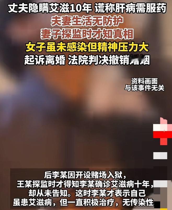 云南,丈夫得了艾滋病谎称肝病,10年间在与妻子过夫妻生活时,从来也没有做过任何防护措施。 妻子一直被蒙在鼓里,直到丈夫因开设赌场入狱,在探监时,才得知真相。 得知真相的那一刻,妻子直接崩溃了! 虽然万幸没有孩子,自己也没有被感染,但妻子仍难以释怀,要求法院撤销婚姻! 这起发生在云南小城的婚姻纠纷,暴露了亲密关系中最伤人的欺骗。 妻子阿珍(化名)与丈夫阿强(化名)是同乡,经媒人介绍相识。 相处半年后,阿强主动提及自己有“慢性肝病”,需要长期服药控制。 阿珍想着夫妻本就该相互扶持,没多想便同意了婚事,2012年两人登记结婚。 婚后阿强确实按时吃药,平时也会刻意避开饮酒,看似十分在意病情。 阿珍贴心照料,每次去医院复查都主动陪同,只是阿强总以“肝病隐私”为由,不让她接触医生。 两人计划要个孩子,阿强却总能找到借口拖延,一会儿说病情不稳,一会儿说经济压力大。 阿珍虽有疑虑,但看着丈夫“病弱”的样子,便把所有不满都压了下去。 她从没想过,丈夫口中的“肝病”,竟是足以摧毁两人生活的艾滋病。 阿强的艾滋病其实在婚前就已确诊,只是他不敢坦白,便用肝病谎言掩盖。 这10年里,他一边偷偷接受抗病毒治疗,一边对阿珍隐瞒实情。 更过分的是,两人的夫妻生活从未采取任何防护措施,他全然不顾阿珍的健康安全。 2022年,阿强因参与开设赌场被警方抓获,最终被判有期徒刑三年。 入狱前的体检中,他的艾滋病病情被登记在册,探监时狱警无意间提及需特殊监管。 阿珍当场愣住,反复追问下,阿强才终于承认了隐瞒10年的真相。 回家后,阿珍立刻去医院做了全面检查,等待结果的那几天,她整夜无法入眠。 万幸的是,检查结果显示她并未被感染,但医生提醒仍需定期复查,避免潜伏期风险。 即便如此,巨大的精神打击还是让她几近崩溃,10年的真心付出,换来的却是致命欺骗。 在亲友的鼓励下,阿珍决定通过法律途径维权,咨询律师后得知可申请撤销婚姻。 律师解释,艾滋病属于《母婴保健法》规定的“指定传染病”,属于需婚前告知的重大疾病。 根据《民法典》规定,一方隐瞒重大疾病结婚的,另一方有权请求法院撤销婚姻。 阿珍迅速收集证据,包括阿强的确诊记录、自己的体检报告以及探监时的录音。 2023年初,她向当地法院提起诉讼,请求撤销与阿强的婚姻关系。 庭审中,阿强承认隐瞒病情,但辩称自己一直积极治疗,病毒载量低,无传播风险。 法院审理认为,阿强婚前确诊艾滋病却刻意隐瞒,已构成欺诈,严重侵害阿珍的知情权。 信源:丈夫隐瞒艾滋病10年,夫妻生活无防护,因丈夫开赌场入狱-度小视