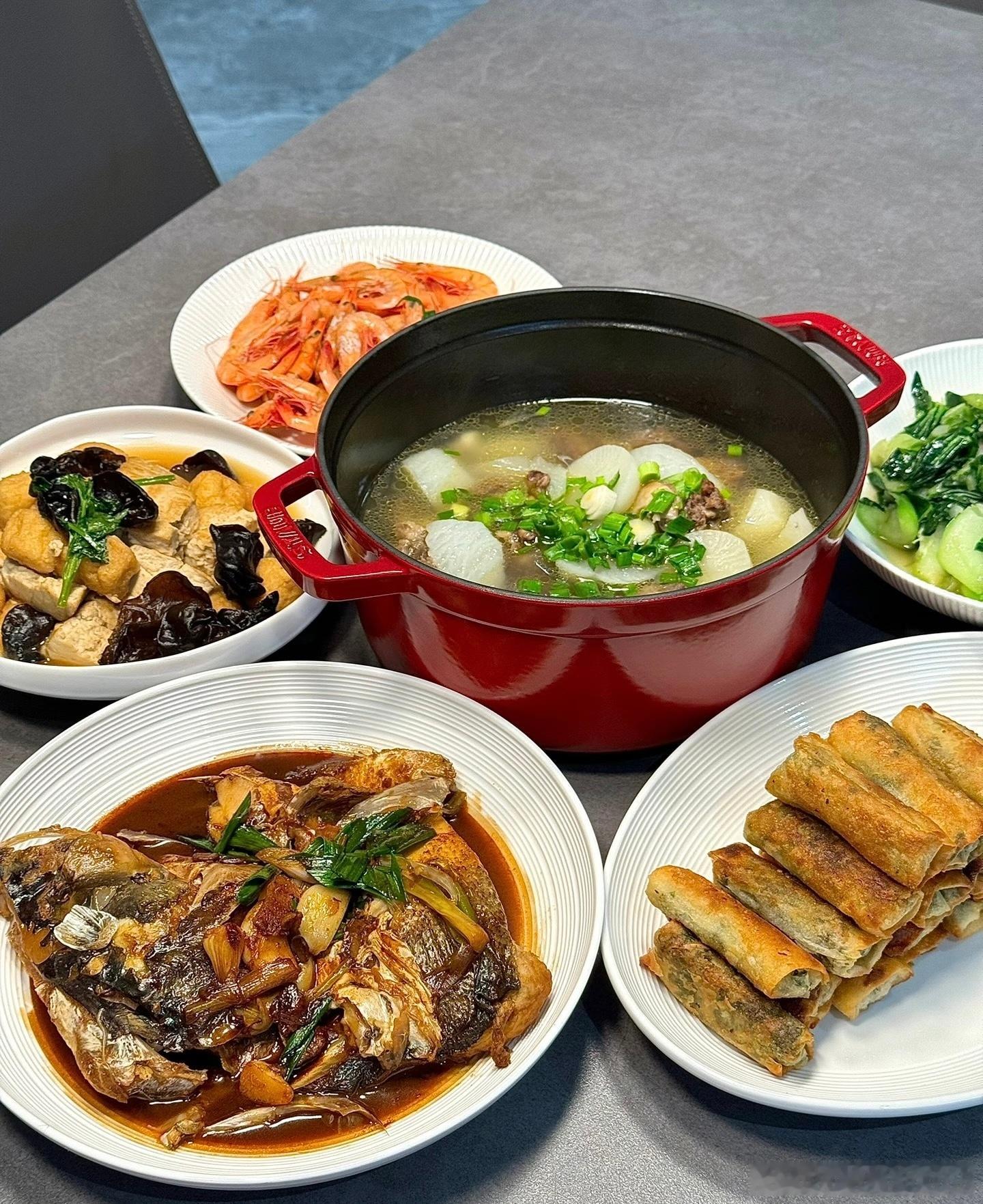 文总晒晚餐,胃口不错