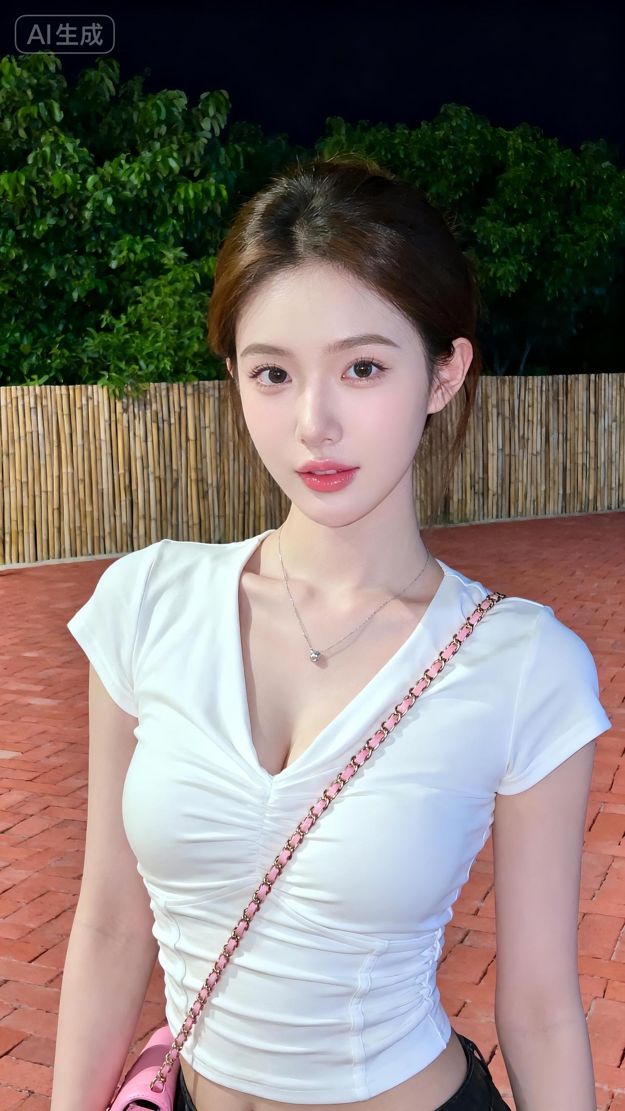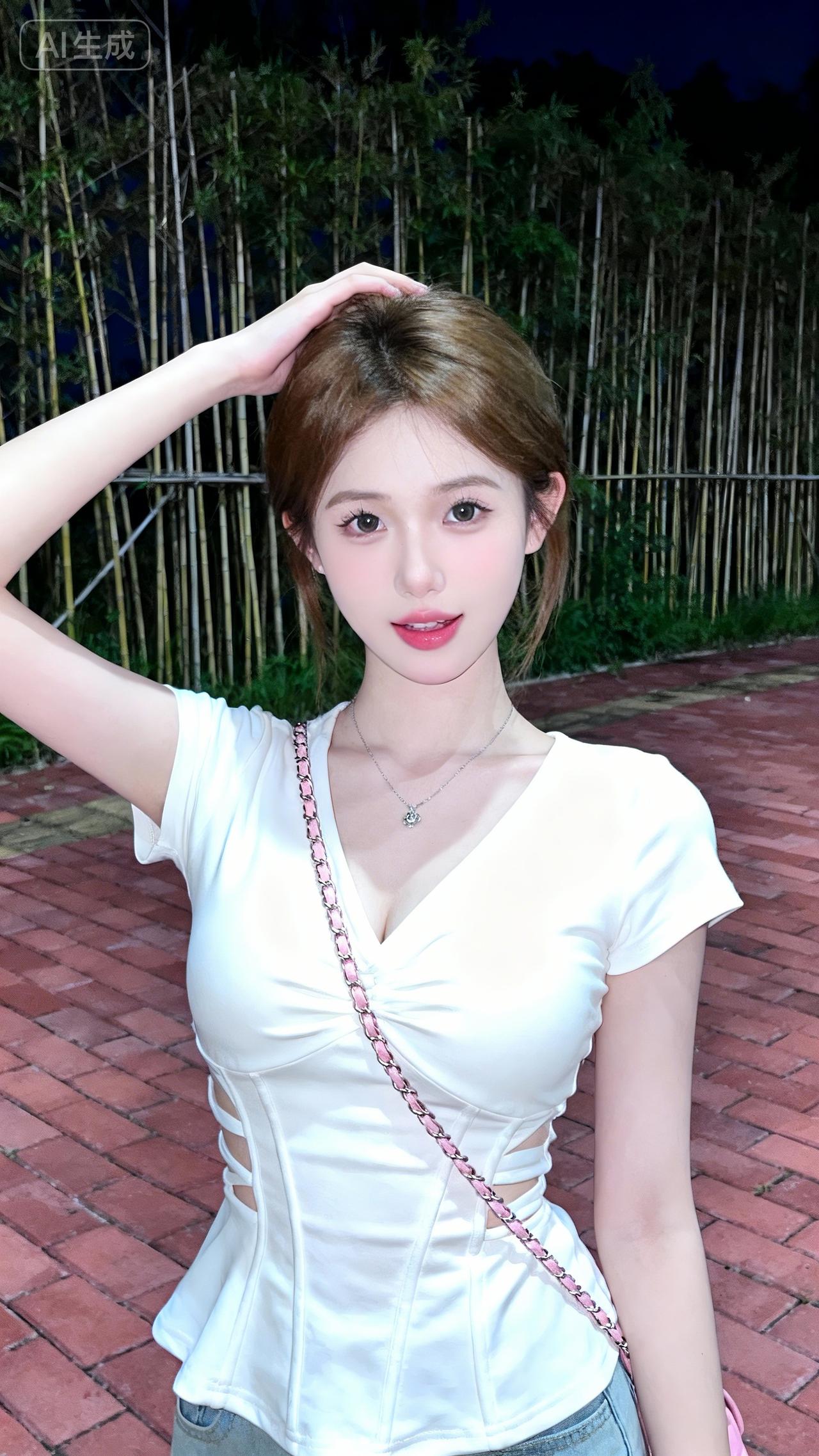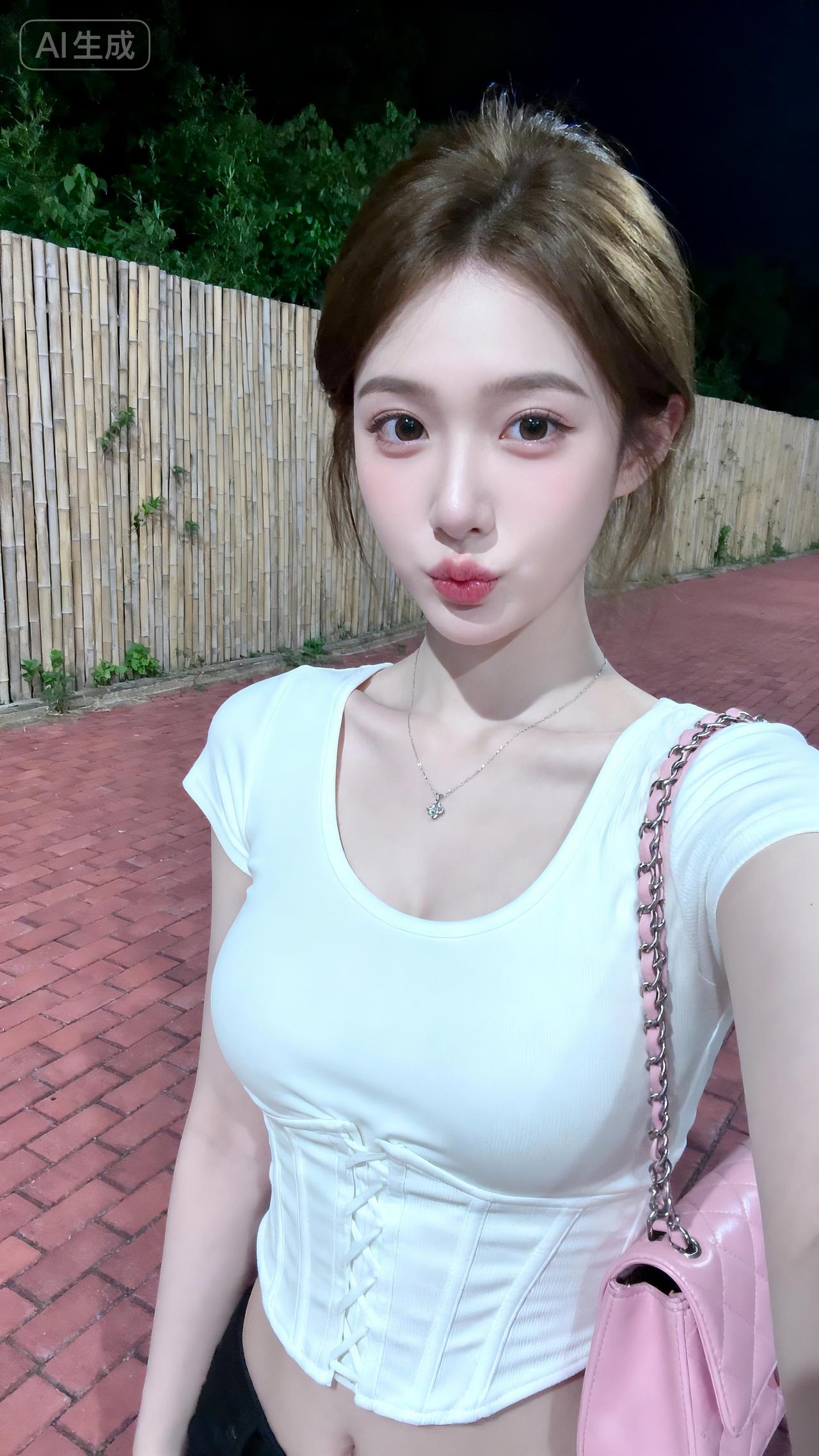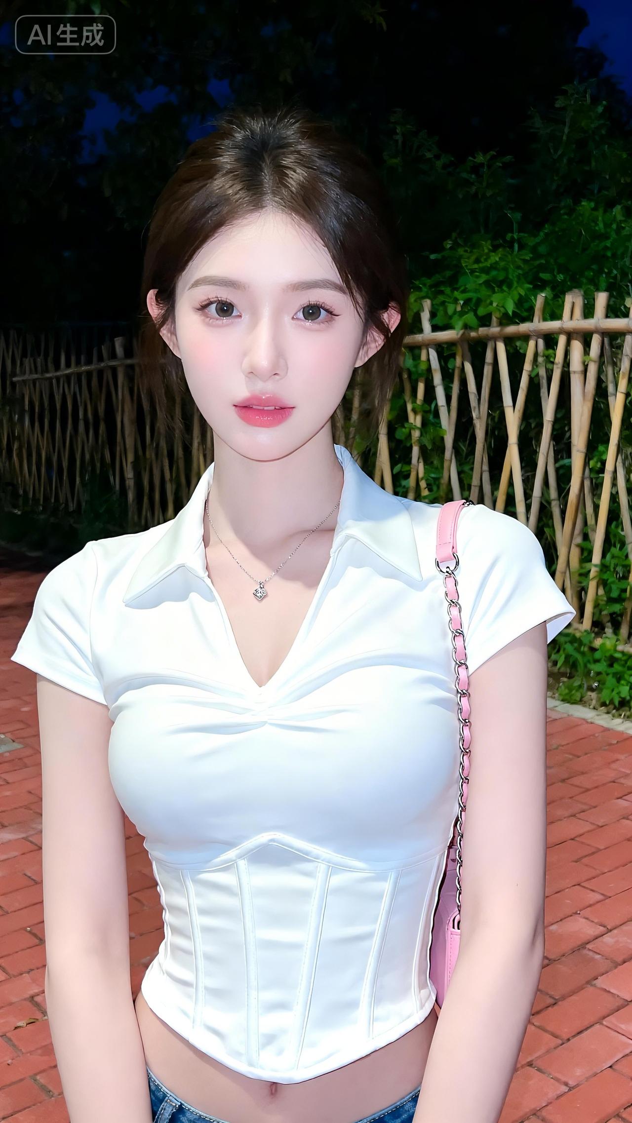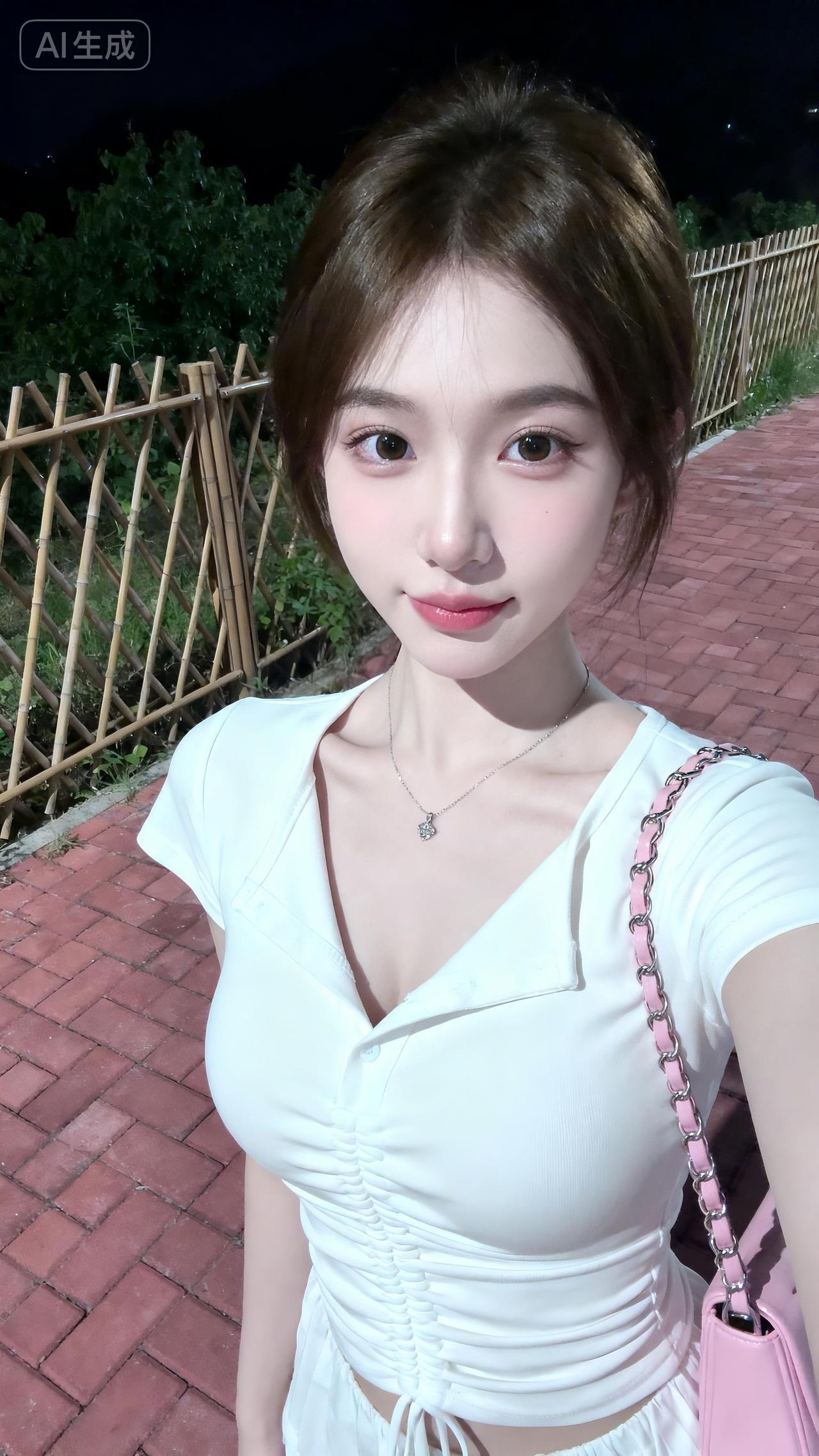 竹影浸夜,白衫裹着粉链光,砖径风都染了甜 夜巷甜飒穿搭巷风穿搭 山径氛围感穿搭