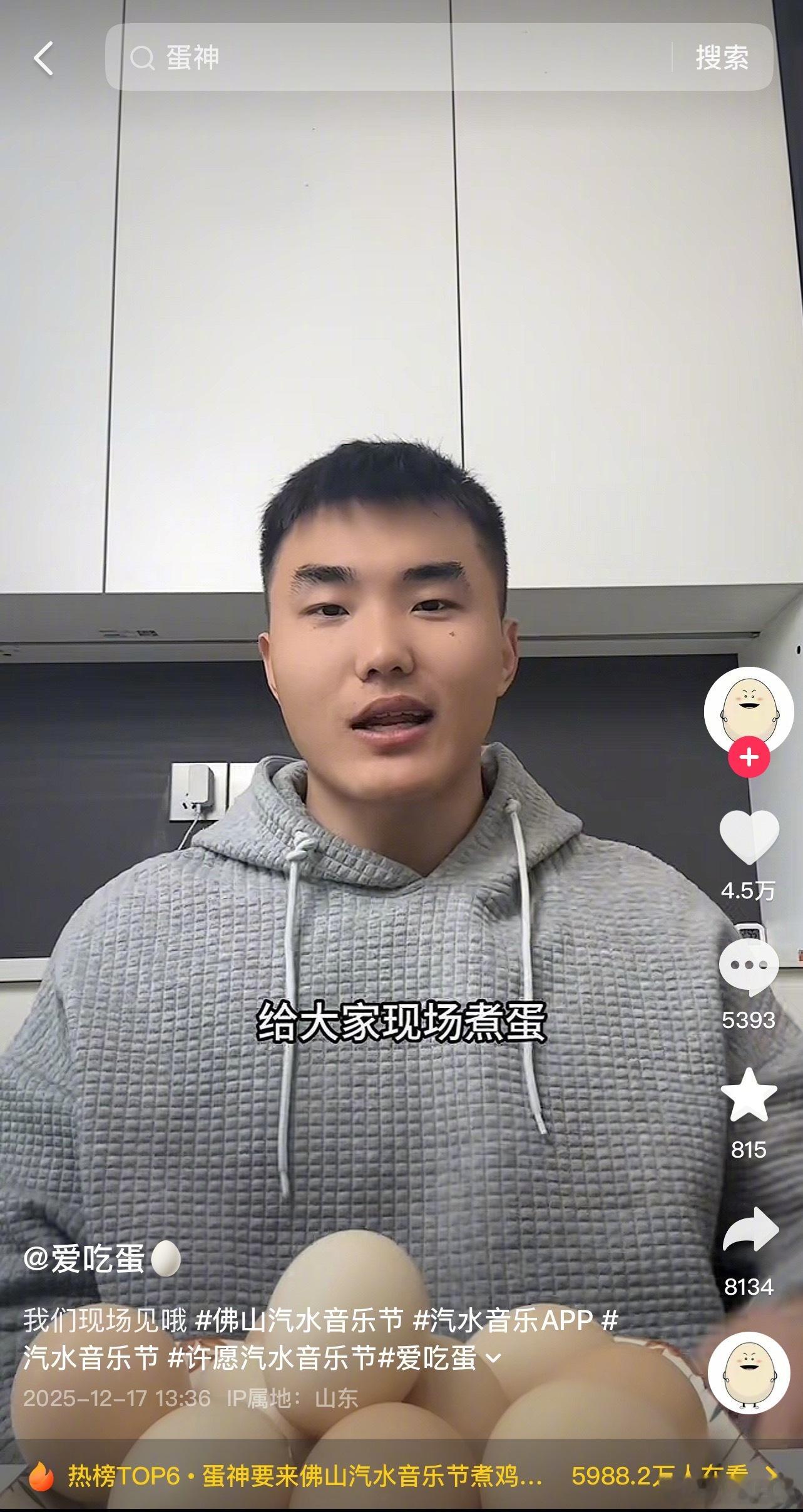抖的煮鸡蛋博主要去音乐节现场煮鸡蛋