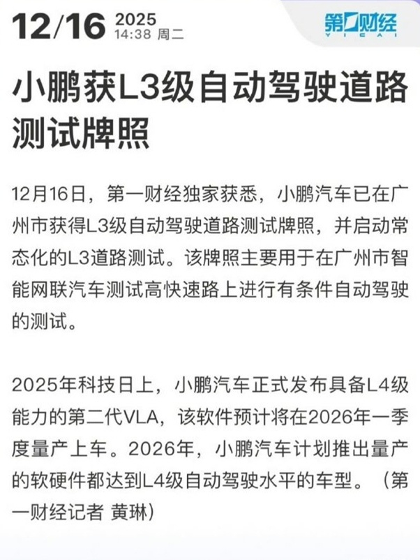 毫不意外,小鹏也在广州取得了L3测试牌,这是应该这波进入L3的车企中唯一采用纯视觉方案的车企,小鹏自研的图灵芯片确实很猛,期待早日落地!