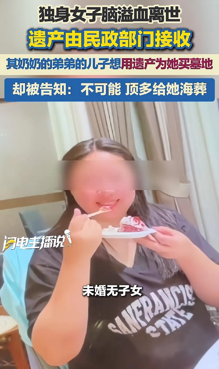 上海独居蒋女士的遭遇, 真是越看越憋屈, 不是因为没有直系继承人遗产就归公,而是从这里面看到了权力和责任的不对等。 蒋女士突发脑溢血,在医院救治期间,社区和民政局没有管过,是远房表弟来签的字,垫的医药费。 蒋女士死后,表弟想用她的遗产给她买块墓地,办个追思会,而社区的回复却是:“不可能,顶多办个海葬”。 民政局更是让表弟写书面申请,支出还要在合理的范围,啥是合理的范围还需法院审理后才能确定,并且墓地后续的维护费都要由表弟承担。 蒋女士需要帮助的时候不见踪影,死了就出来依法接收遗产,这合理吗? 再退一步说,蒋女士没有直系继承人,遗产归公用于做公益,这也算是为社会做了贡献吧,有贡献的人连让她入土为安都做不到,这对吗? 要是把表弟垫的费用和医院的治疗费结清,再让蒋女士入土为安,余下的钱用于做公益,我想大家都不会说什么。 可民政局的做法确实让人寒心,遗产接收了,却不想负一点点的责任,这也太不对等了。 假如蒋女士没有遗产,而是负债,那民政局会帮着还吗? 这事要放在古代,那就是“吃绝户”,你们觉得呢?