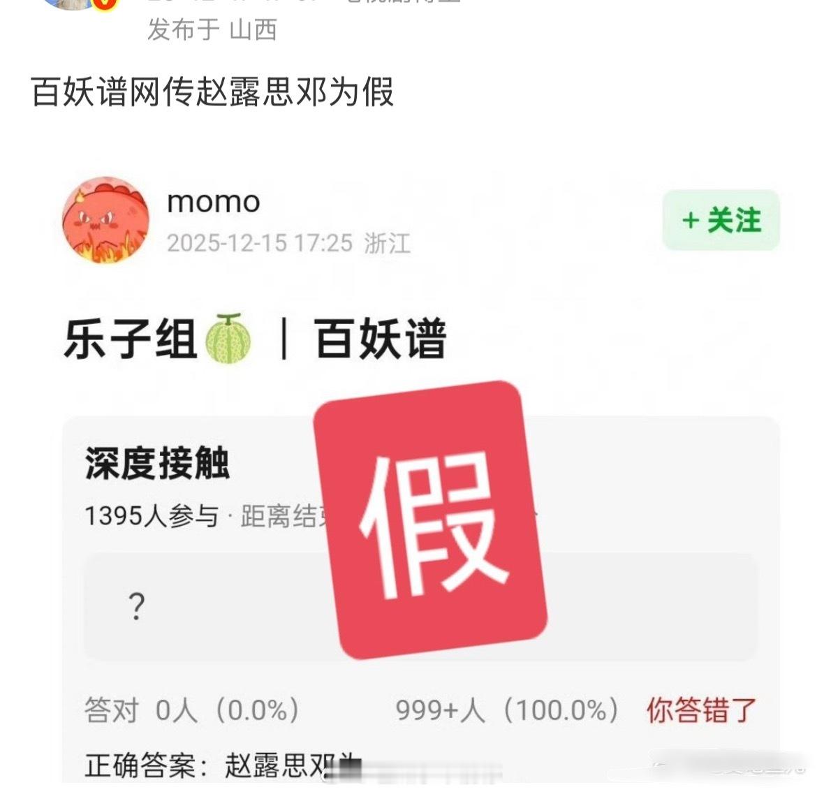 🍉:有博主说《百妖谱》赵露思、邓为是假的