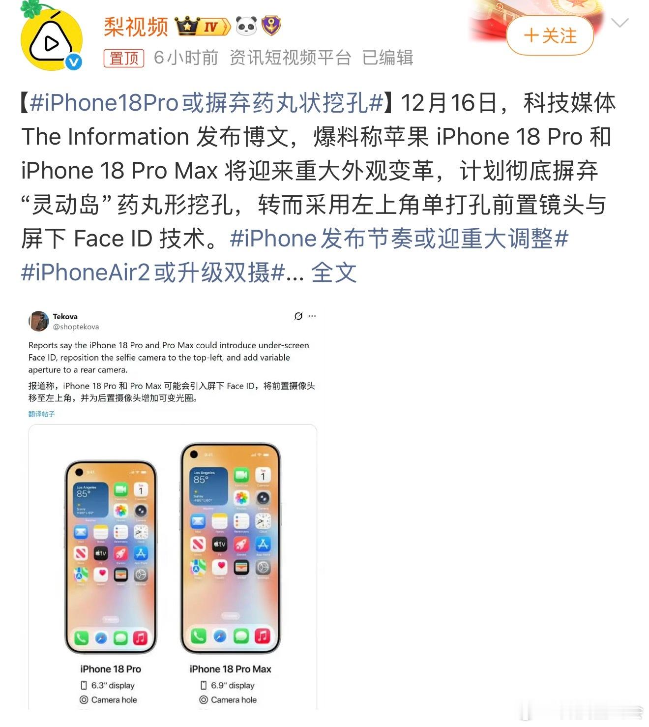 iPhone18Pro或摒弃药丸状挖孔什么刘海、药丸、挖孔,我觉得都差不多。啥时