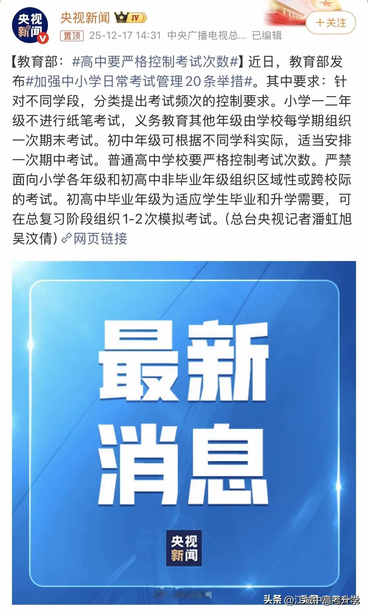 重磅!教育部发文要为学生减负考试, 高中生要减少考试的次数, 初中生可适当安排一次期中考试, 小学生一二年级不考试, 高年级段进行一次期末考试。 如今因为考试成绩引发的家庭矛盾也不少, 于是不少学校开始启用不公布考试成绩, 而只公布考试成绩的等级, 让学生自己去评判知识的掌握程度。 其实考试与知识掌握程度划等号, 这种做法也是不完全科学的, 毕竟不同的同学对于知识掌握的程度不同, 对题目难度的阈值感受也不同。 就比如同样的一套试卷, A同学能考100分, 是因为试卷上限就是100分, 给更难的试卷他可能也是100分, 而B同学也能考90分, 是因为他只能做出来90分的难度的题, 而换一套高难度的题可能就不及格, 这就是能力的差别, 而不同的试卷, 不同同学的发挥能力是有差别的。 如今不发放分数的做法, 也是不想让大家产生分数焦虑, 毕竟平时的分数再高, 也还是需要高考一锤定音。
