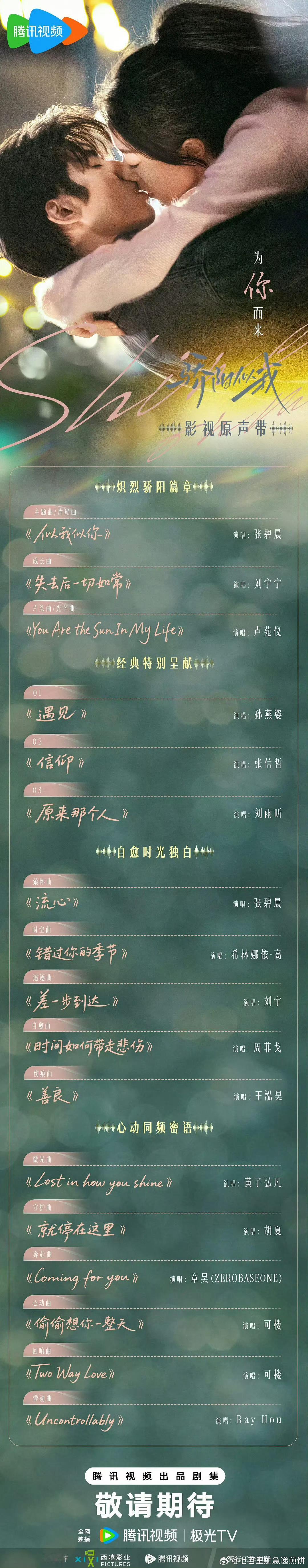 宋威龙赵今麦的骄阳似我出了ost歌单,阵容很豪华