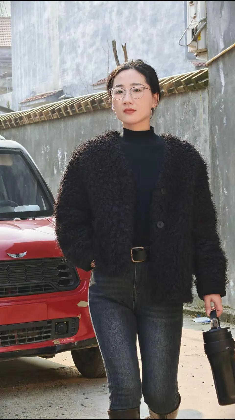 黑衣美人倚车立,岁月静好似水流。分享最近很喜欢的一张照片
