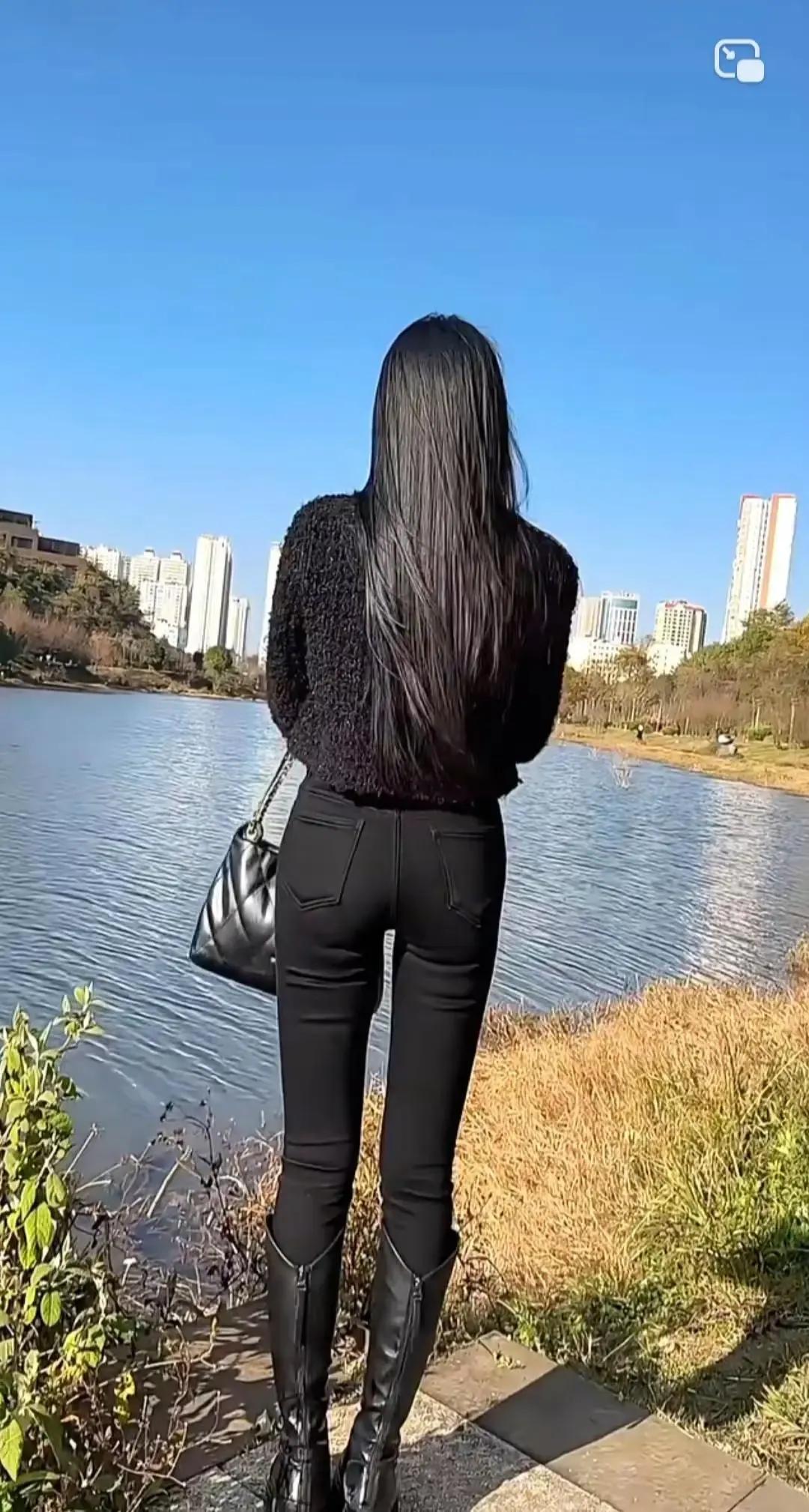 黑衣美人倚车立,岁月静好似水流。分享最近很喜欢的一张照片