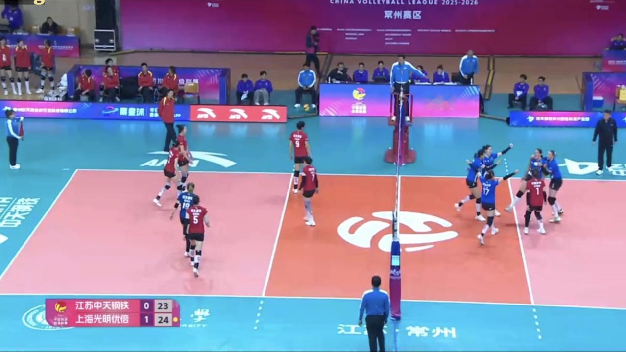 关键时刻范伯宁一传被上海女排发崩!江苏女排主帅施海荣用接应周页彤换下唐欣来加强进攻,而一传问题仍得不到解决,看来是换汤不换药,局末终于追平后被对手上海女排的范赖克连续得分,关键时刻范伯宁一传崩了,最后飞了一个换来球队第二局23-25的再失利。施海荣是在练范伯宁的一传吗?
