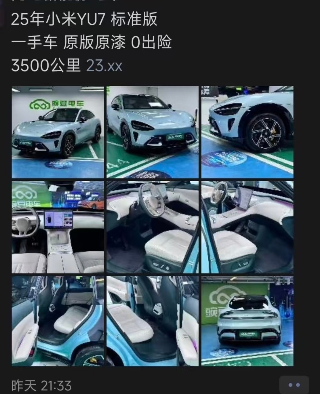 看到某短视频平台,某二手车商说,十三四万能买小米SU7?真的很离谱,但是我告诉大家,如果大家真的相信了,去找二手车商,他们会告诉你去某音上买去。不可否认,近期持续的舆论风波,小米汽车整体的二手车价格确实不稳定,我也看了很多视频包括采访二手车商,以及真实的车主晒出的回收价。除了小米su7ultra 的价格打折确实厉害之外,其他的车型依然整体稳定。可以看图,部分车主或者车商给的YU7的价格,都比较稳定。很多二手车商,只是单纯的引流而已。目前价格不稳几乎都是寄卖,除非是之前二手车商想做黄牛囤了单,否则不会赔钱,很多都是夸大其词。小米小米汽车小米su7