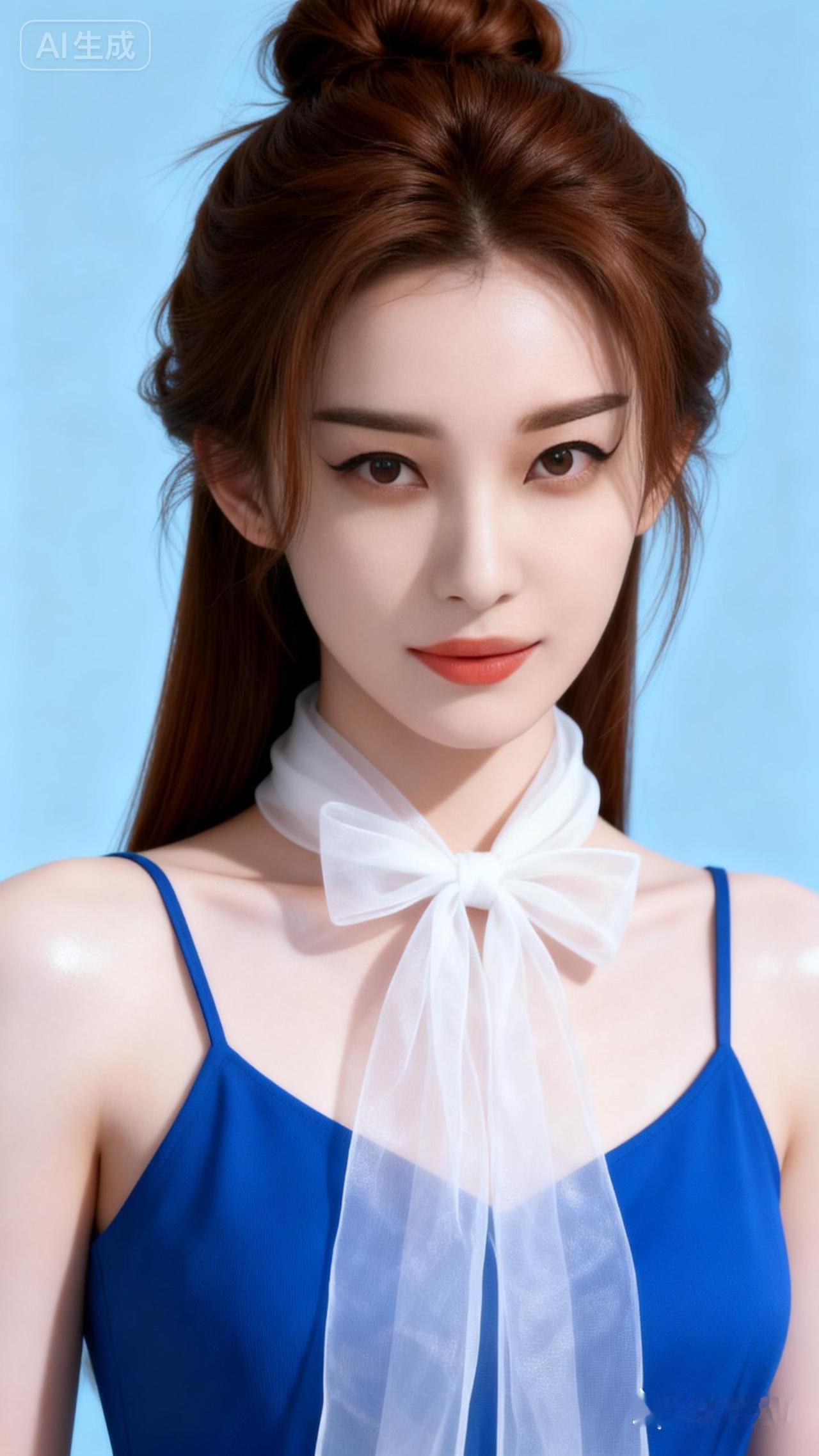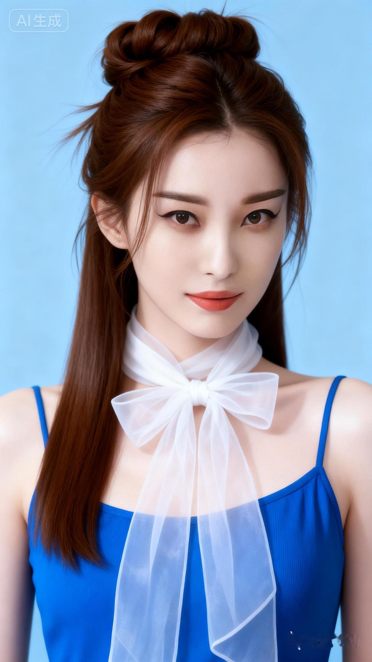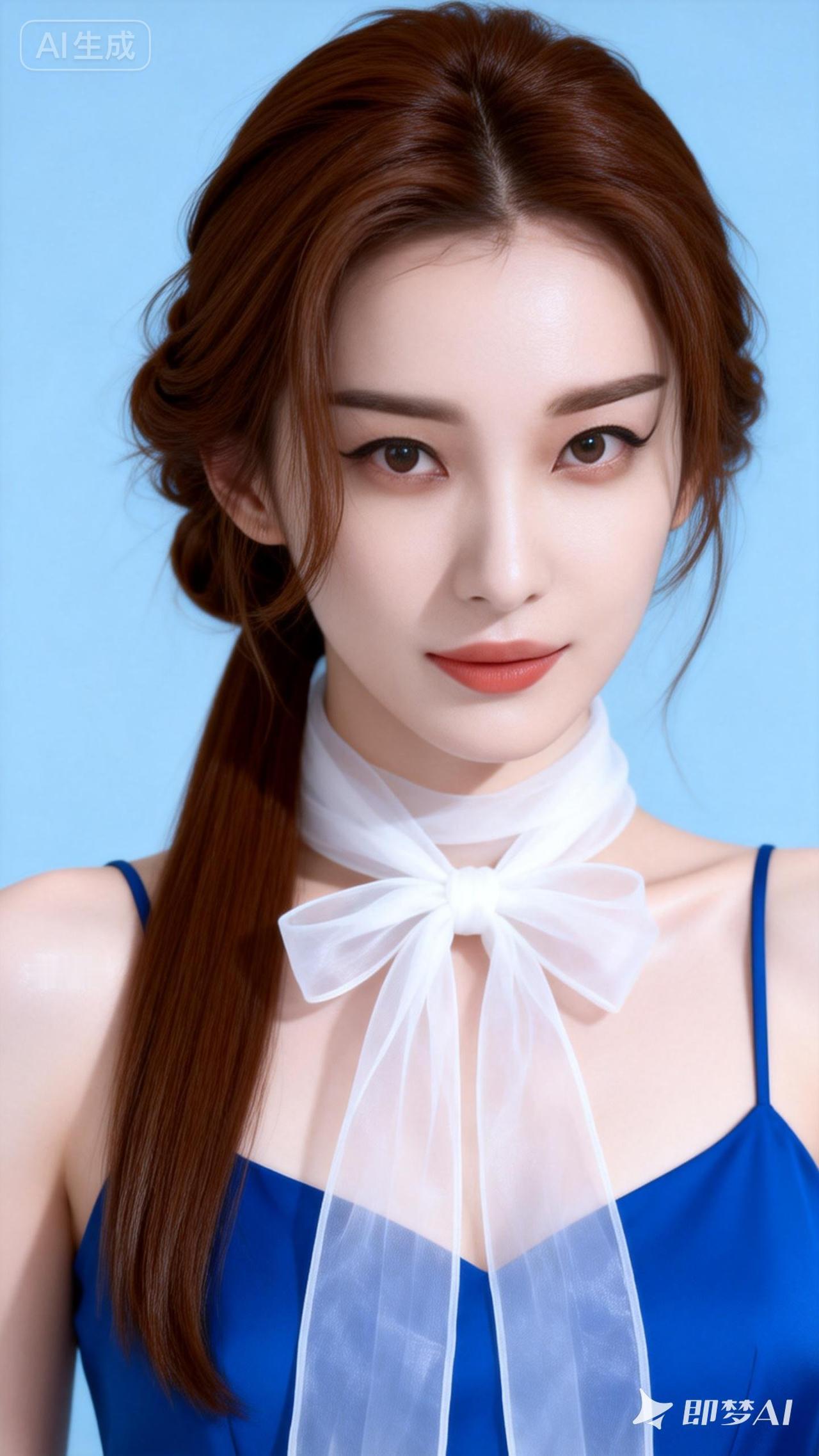 甜美少女风,优雅蓝裙搭配白色蝴蝶结,温柔动人!💕