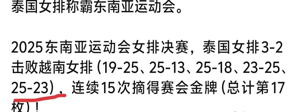 决胜局打到23平,这比赛太刺激了! 泰国女排作为东南亚老大,这次赢得真悬。她们以前可是13连冠的霸主,越南队一直都是亚军。可你看这场球,越南队的拼劲和发挥,那个拼劲,真的不输。 越南队早就不是以前那样了。就在2025年东南亚排球联赛第二站决赛,她们3-2历史性赢了泰国队,拿到队史首冠。这说明泰国队的统治力正在被动摇。 泰国队自己也有问题,主力都在日韩联赛打球,国家队磨合时间太少了。场外的事儿也不少,比如越南队阮氏碧泉的性别争议。一直都有队在质疑,给比赛添了好多复杂的东西。 2025年女排世锦赛就在泰国办,两队都要面对世界强队。这发球和一传不练出来,真顶不住。 东南亚女排这格局,真的要变天了。