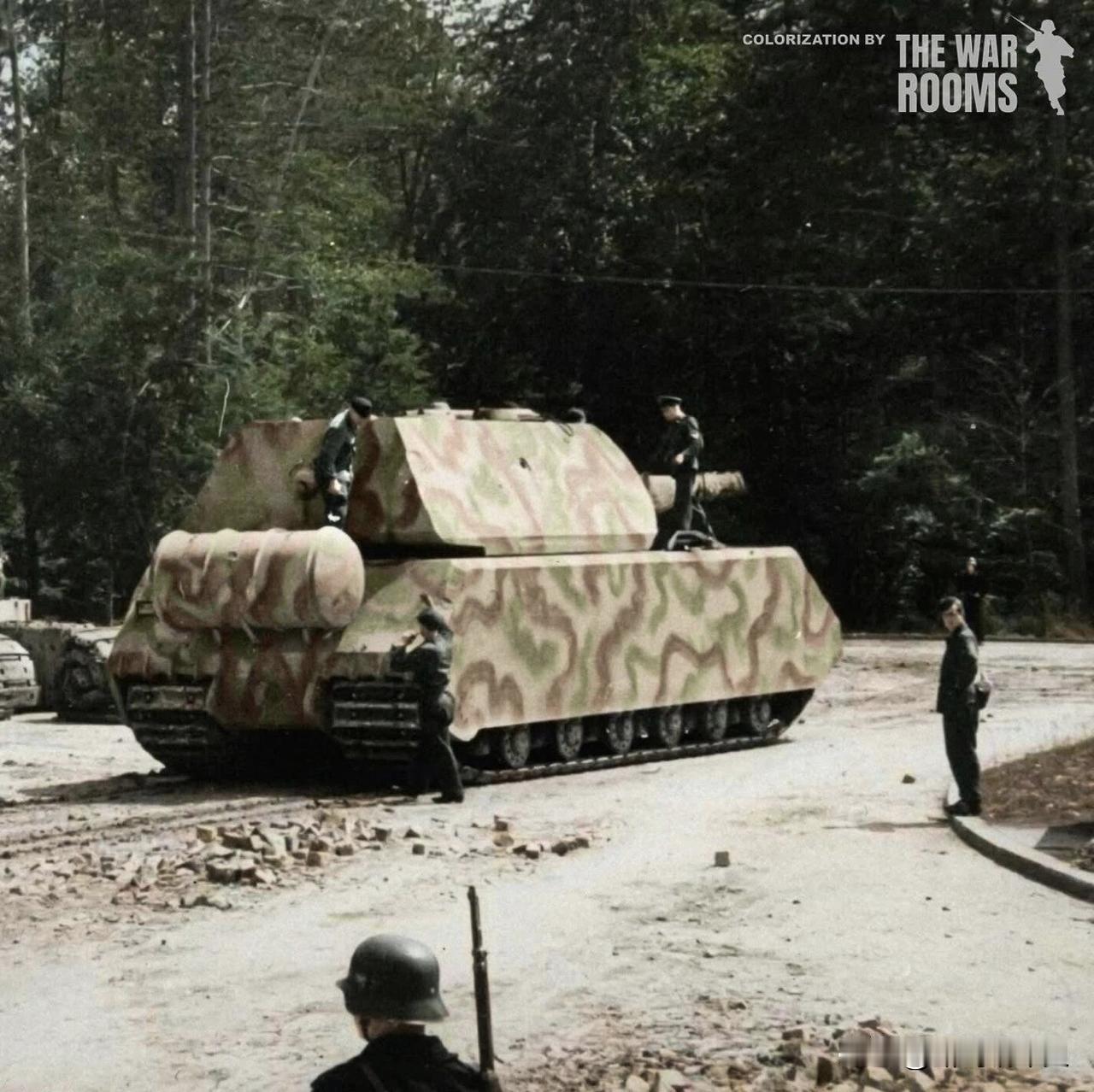 第三帝国的“绝望之作”:“鼠”式超重型坦克 “鼠”式超重型坦克堪称坦克发展史上一个极端的代表。它诞生于1943年,是希特勒本人对“无敌陆地堡垒”设想的产物,旨在以绝对的防御和火力扭转东线的劣势。 这款坦克最直观的特征就是其令人震惊的庞大身躯。它的战斗全重达到188吨,相当于四辆当时德军主力中型坦克的重量,至今仍是世界上最重的坦克之一。为了匹配这份重量,它安装了厚重的装甲,炮塔正面和车体首上的装甲厚度高达200至240毫米,设计初衷是让它能在战场上“免疫”一切攻击。 在火力上,“鼠”式坦克同样追求极致。它的主炮是一门威力巨大的128毫米KwK 44 L/55火炮,能够在远距离轻松击穿当时盟军任何坦克的装甲。此外,它还配有一门75毫米同轴副炮,用于对付轻型目标或节省主炮弹药。 然而,极致的防御和火力带来了灾难性的代价——极其低下的机动性与可靠性。为了驱动这个钢铁巨兽,其柴油-电力传动系统复杂而笨重,导致最大公路时速仅约20公里,越野能力几乎为零。更致命的是,没有任何桥梁能承受它的重量,它必须依赖潜渡或特制的摆渡箱通过河流,这使其在实战中寸步难行。 最终,“鼠”式坦克仅仅生产出两辆原型车,并未参与任何实战。随着战争的结束,它们遭到德国人不同程度的破坏。战后,苏军将缴获的两辆“鼠”式坦克残骸运回苏联,于1946年抵达库宾卡试验场,用于技术分析与研究。1978年,它们被转移至库宾卡坦克博物馆作永久展览。如今博物馆中公开展出的那辆“鼠”式坦克,并非完整的原车,而是由苏方将两辆坦克的可用部件拼装、复原而成的组合体。 二战德国坦克 超级重型坦克 军事 军迷发烧友 历史 二战