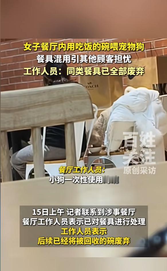 “顾客天塌了!”12月14日,北京,一女子吃饭时,发现邻桌的客人正用盘子给狗喂食,周围人都看见了这一幕,倍感不适,经过观察,客人先后给狗用了两个餐具,一个被服务员扔了,另一个却被回收清洁。网友:太膈应人了! 今年8月31日晚,温州一家挂着“亲子乐园”招牌的餐厅里,陈先生正把剥好的虾仁放进女儿的小碗。 眼角余光里,两只涂着红色指甲油的手正捏着餐厅公筷,往一只趴在餐椅上的宠物狗嘴里送西兰花。 狗爪子搭在米白色椅垫上,留下几个浅灰色印子,而不远处,穿围兜的小男孩正摇摇晃晃走向那桌——他妈妈刚转身去取餐。 “那是公筷!”陈先生一把拽回孩子,声音惊动了邻桌。 两位女顾客抬头瞥了他一眼,继续用公筷挑拣盘子里的牛排,狗尾巴扫过桌面,打翻了半杯柠檬水。 店长赶来时,围裙上还沾着蛋糕奶油。 “我们没规定不让带宠物。”他掏出手机翻找着什么,屏幕光照亮他脸上的汗珠,“公筷……可能是她们拿错了。” 陈先生报了警。 民警在监控室待了20分钟,出来时说“会联动市场监管”,却没让他看那段记录了公筷流转过程的视频。 直到9月4日,他手机里除了派出所的接警短信,再无其他回音——那个承诺“保存一个月监控”的店长,后来再也没接通过电话。 视线转回北京的冬夜,12月14日的餐厅里,玻璃窗上凝着一层薄霜。 穿米色大衣的女士正用勺子拨弄碗里的酸菜鱼,邻桌的金毛犬突然把前爪搭在桌面上,嘴里叼着的餐厅骨碟“哐当”掉在地上。 穿羽绒服的主人慌忙捡起,招手又要了个新盘子,切了块三文鱼塞进狗嘴里。 女士数着服务员的动作:第一个沾了狗口水的盘子,被保洁员直接扔进黑色垃圾袋;第二个——她亲眼看见狗用舌头舔过边缘——却被服务员端进了后厨的消毒水池。 “不是有宠物专用餐具吗?”她后来在评论区质问餐厅。 官方回复很快置顶:“可能是顾客未留意专区标识,已销毁同批次餐具。” 下面却有网友晒出当日实拍图:所谓“宠物专区”的柜子里,堆着的全是儿童塑料碗。 有人在评论区吵起来。 “我家狗定期体检,比某些食客还干净!” “可你能用公筷喂孩子,为什么要用公筷喂狗?” 当“宠物友好”成了不少餐厅的引流标签,那些藏在菜单角落的“宠物餐具需单独申请”字样,总被客流高峰的喧嚣吞没。 就像温州那家亲子餐厅,明明规定“除导盲犬外禁止宠物入内”,却在周日晚上让两只没戴牵引绳的狗,在儿童游乐区跑来跑去。 市场监管部门后来抽查了10家宣称“宠物友好”的餐厅,发现7家没有专用消毒设备,5家连基础的餐具分区记录都没有。 西贝餐厅事后扔掉了整箱公筷,北京那家店悄悄下架了“宠物友好”的宣传海报。 但当更多小餐馆还在模糊规则——既想赚养宠人的钱,又怕得罪带孩子的家庭——下次你推开餐厅门时,或许该先看看: 消毒柜旁,有没有一个单独的、写着“宠物专用”的蓝色塑料筐。 就像那个北京女士最后拍的照片里,邻桌空椅子上,确实放着个印着小狗图案的碗——只是从始至终,没人用过它。