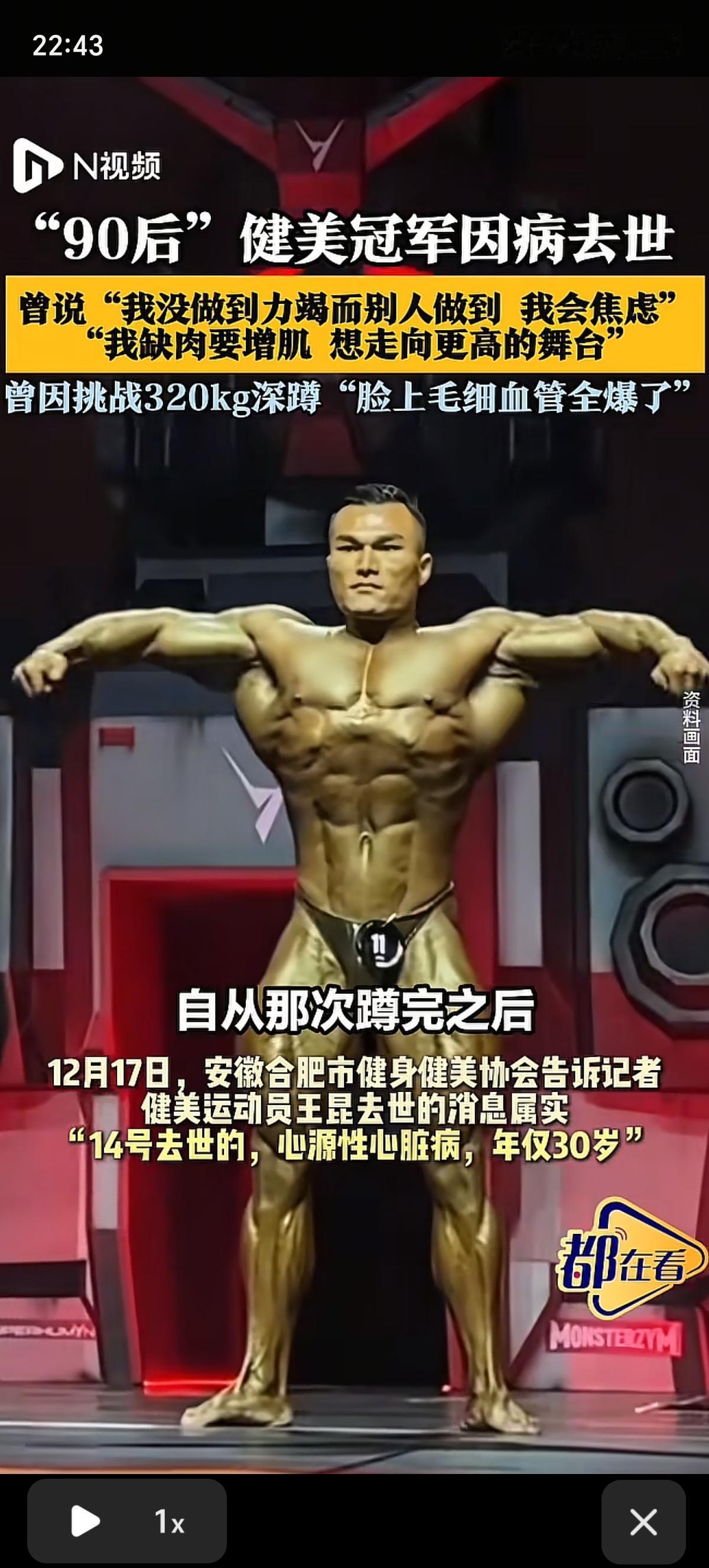 健美真的对身体健康有好处吗?90后健美冠军曾经为了挑战320kg深蹲,脸上毛细血管全爆了,如今才30来岁就扑街了。说实话,我真的没看出来哪里美了,个人欣赏不来这种美,这大肌肉块,好像把一块块馒头或者石头磊在了身上,穿衣服显胖,脱衣服还挺能唬人的,很不好惹的样子。 这个健美冠军很敬业,达不到要求就感觉自己缺肉,得增加肌肉。都感染流感了也不休息,坚持高强度训练。 健美似乎成了他的负担,只会让他焦虑,并没有让他开心起来。看样子是压力太大,心脏承受不住负荷才挂了的。