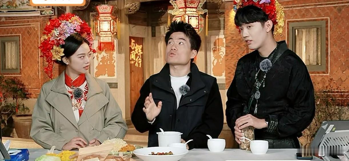 小贝和鹏鹏簪花出场 董宇辉看上去还挺喜欢他俩的造型 小贝说给宇辉也簪一个 宇辉说
