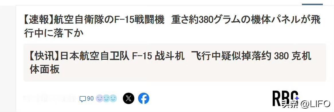 日媒 RBC:琉球那霸基地紧急起飞的空自 F-15,返回那霸机场后,检查机身时发现机身底部有一块面板脱落。据悉脱落的是一块纵 41.5 厘米、横 20.5 厘米、厚 2 至 5 毫米的铝合金面板,重量约 380 克。虽已在机场内进行搜索,但尚未找到。疯狂掉零件的老爷机 F-15J。要被我们的无人机把机体寿命遛死了。