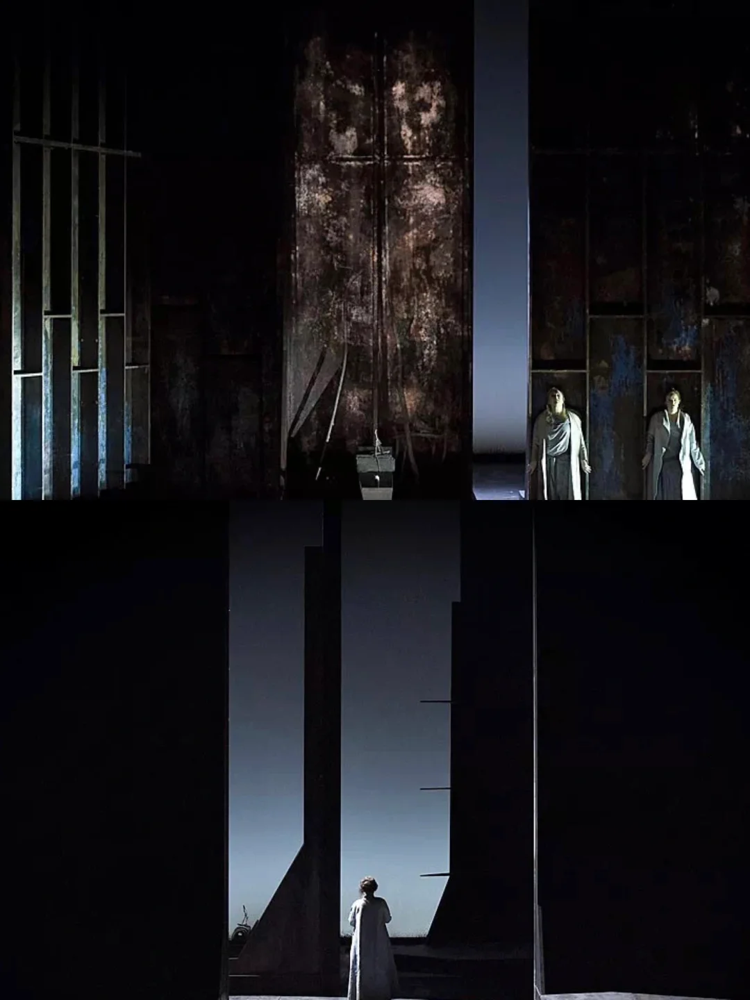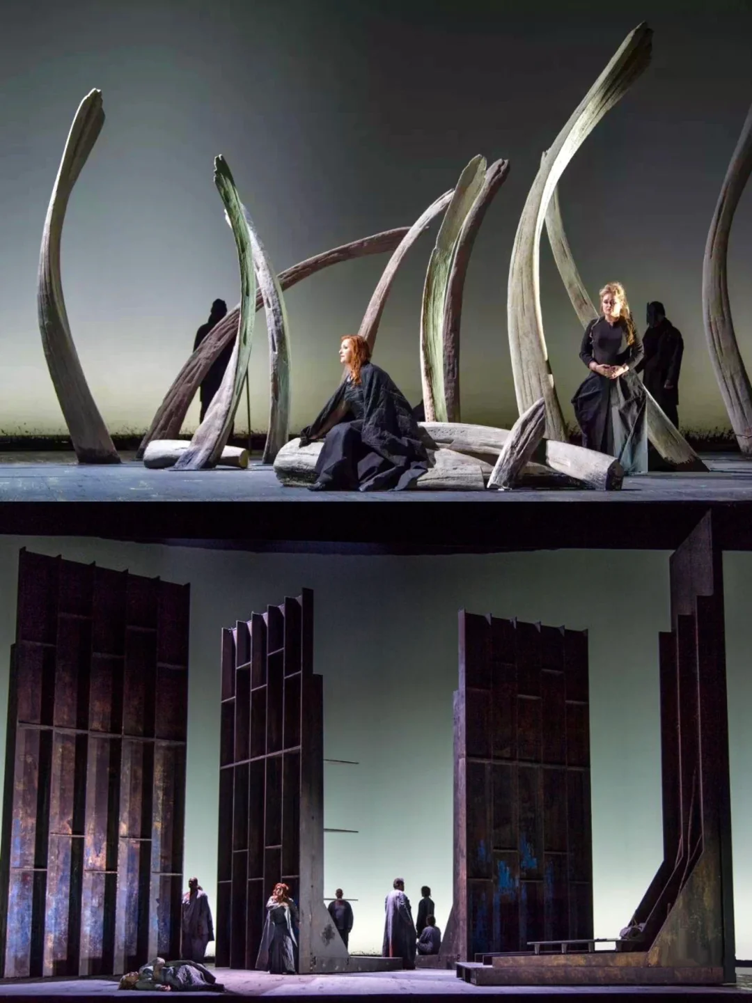 Tristan und Isolde 特里斯坦与伊索尔德 导演:皮埃尔·奥迪(Pierre Audi) 舞台设计受到拆除的船只残骸的启发,使用了几个移动的面板,其略带彩色和生锈的纹理带来了光线和色彩的效果。加上视频投影创造出一些图像,与色彩相比,视频并不那么重要,它使元素生动起来,给舞台带来多层次的装饰性。 (素材源自网络,仅做分享使用)