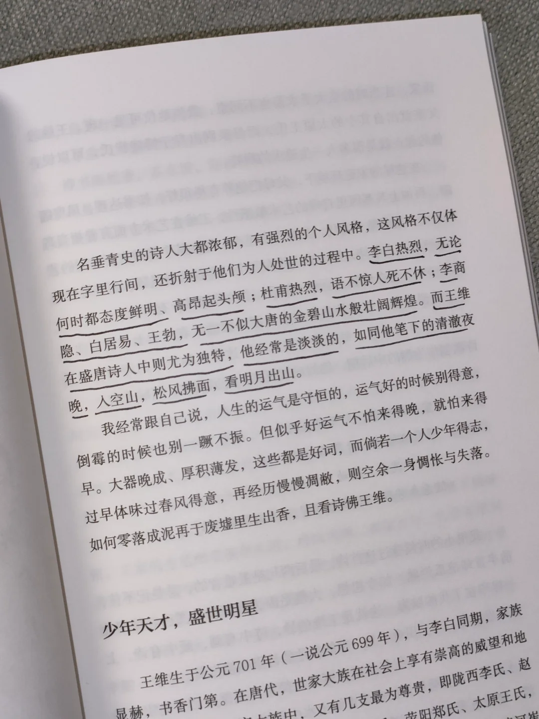 他经常是淡淡的,如同他笔下的清澈夜晚,入空山,松风拂面,看明月出山。