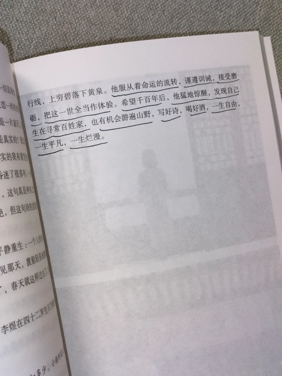 他服从着命运的流转,谨遵训诫,接受磨砺,把这一世全当作体验。希望千百年后,他猛然醒悟,发现自己生在寻常百姓家,也有 机会游遍山野,写好诗,喝好酒,一生自 由,一生平凡,一生烂漫。
