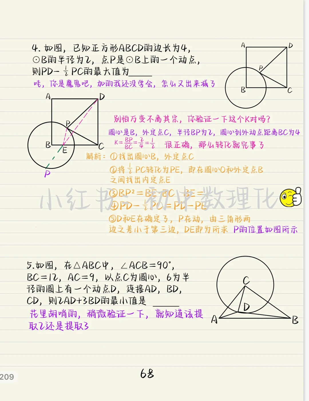 阿氏圆和胡不归都是形如PA+k·PB,不同之处在于阿氏圆的题目里面会出现圆。 共同点都是转化k·PB。 掌握了做题套路,既简单又省时。 一定要多看几遍,彻底搞懂。