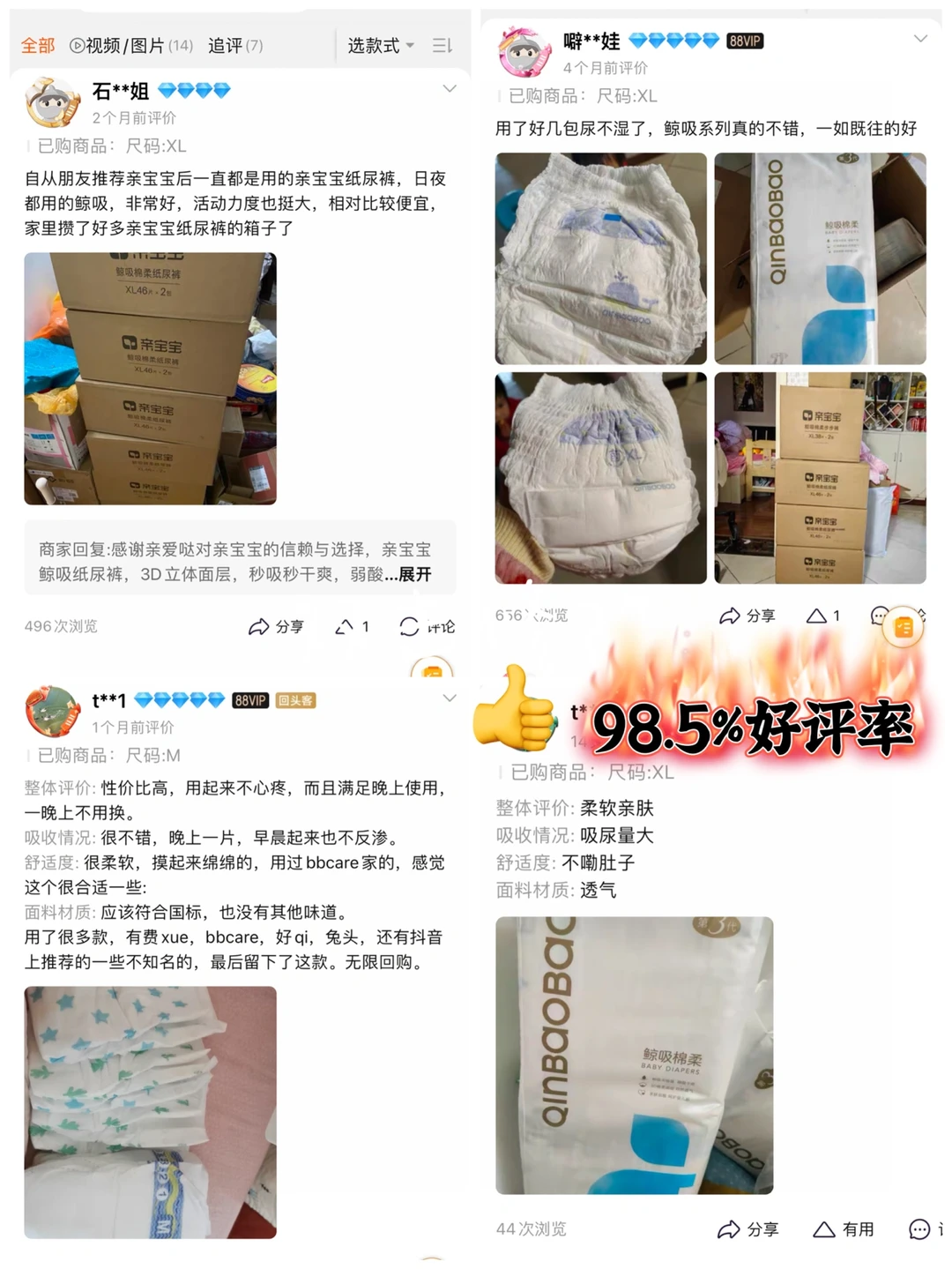 闺蜜买了我推荐的亲宝宝鲸吸纸尿裤后,她跟我说不停产就会一直买!