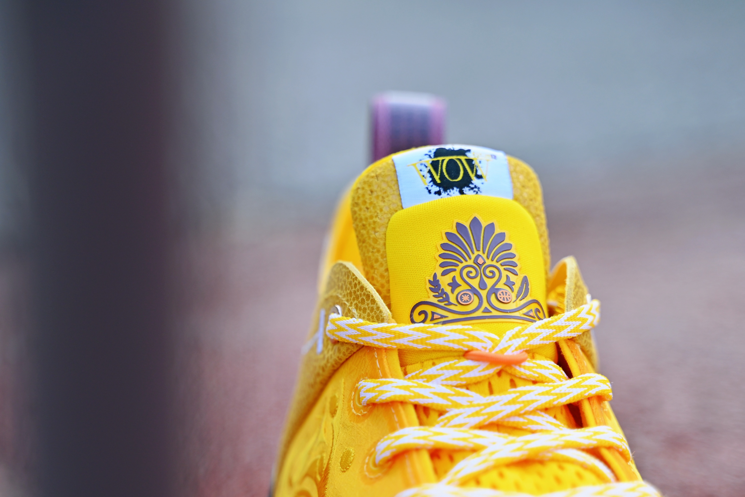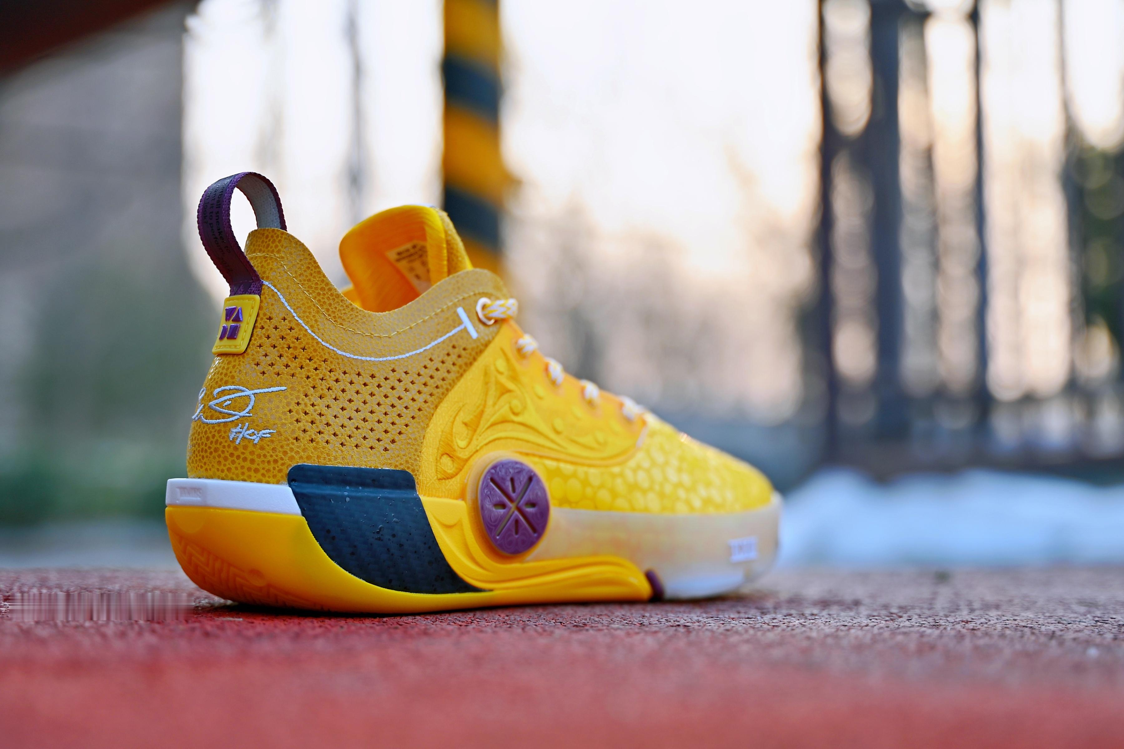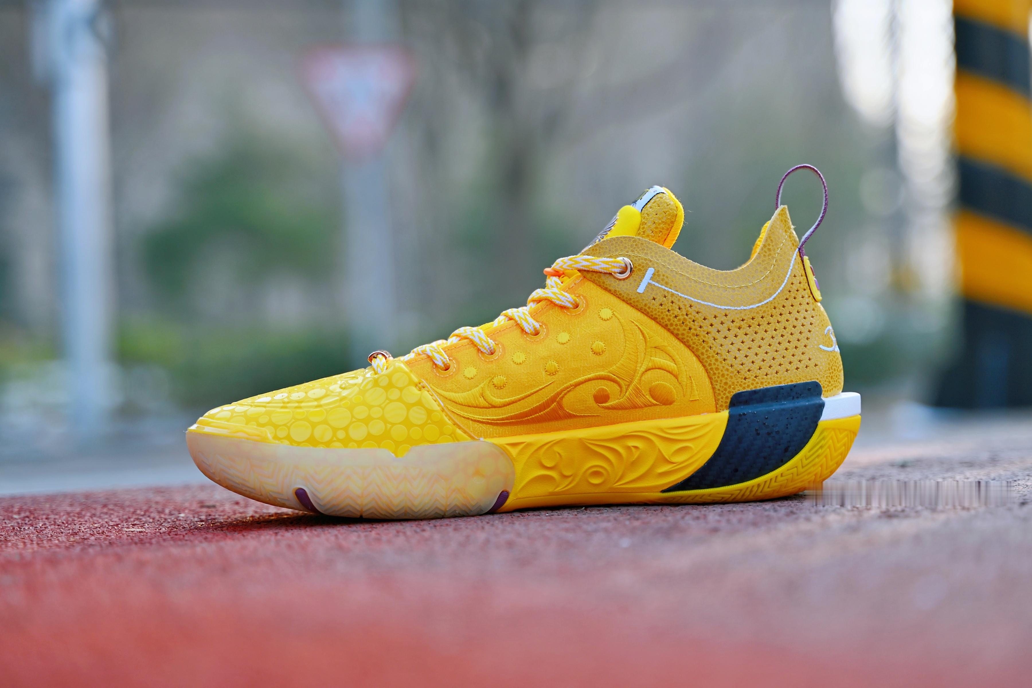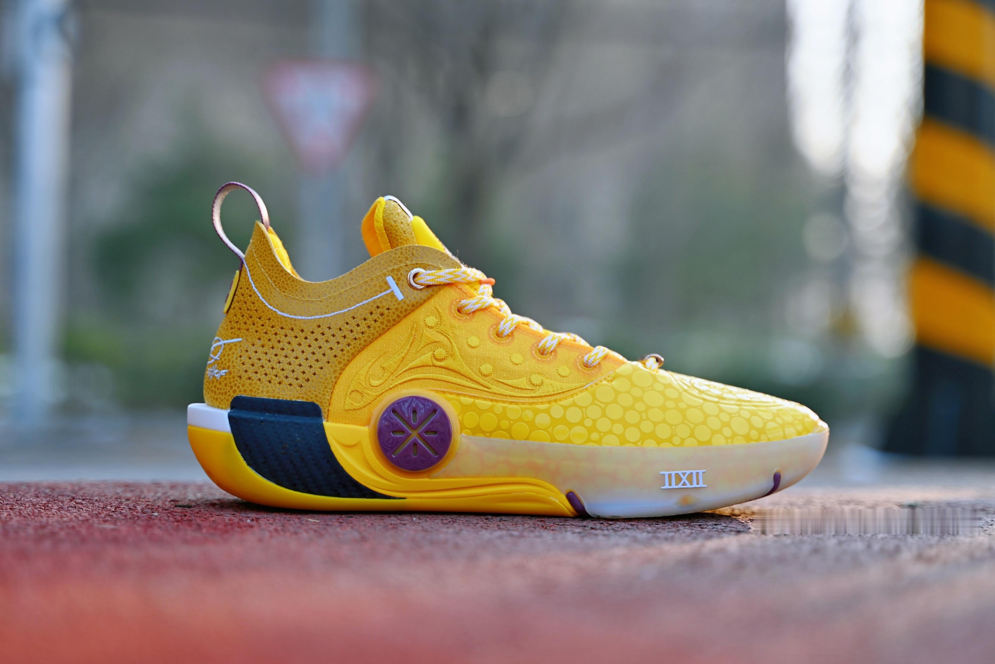 韦德之道 XII LUX 黄色魔鬼鱼 冬季里的暖阳 配色传承已有一轮 有故事 有回忆 碳板上的水珠在提醒这是双来自🐟的配色 紫色logo点缀匹配上了湖人 让我有爱的配色~凹凸秀场鞋控的日常