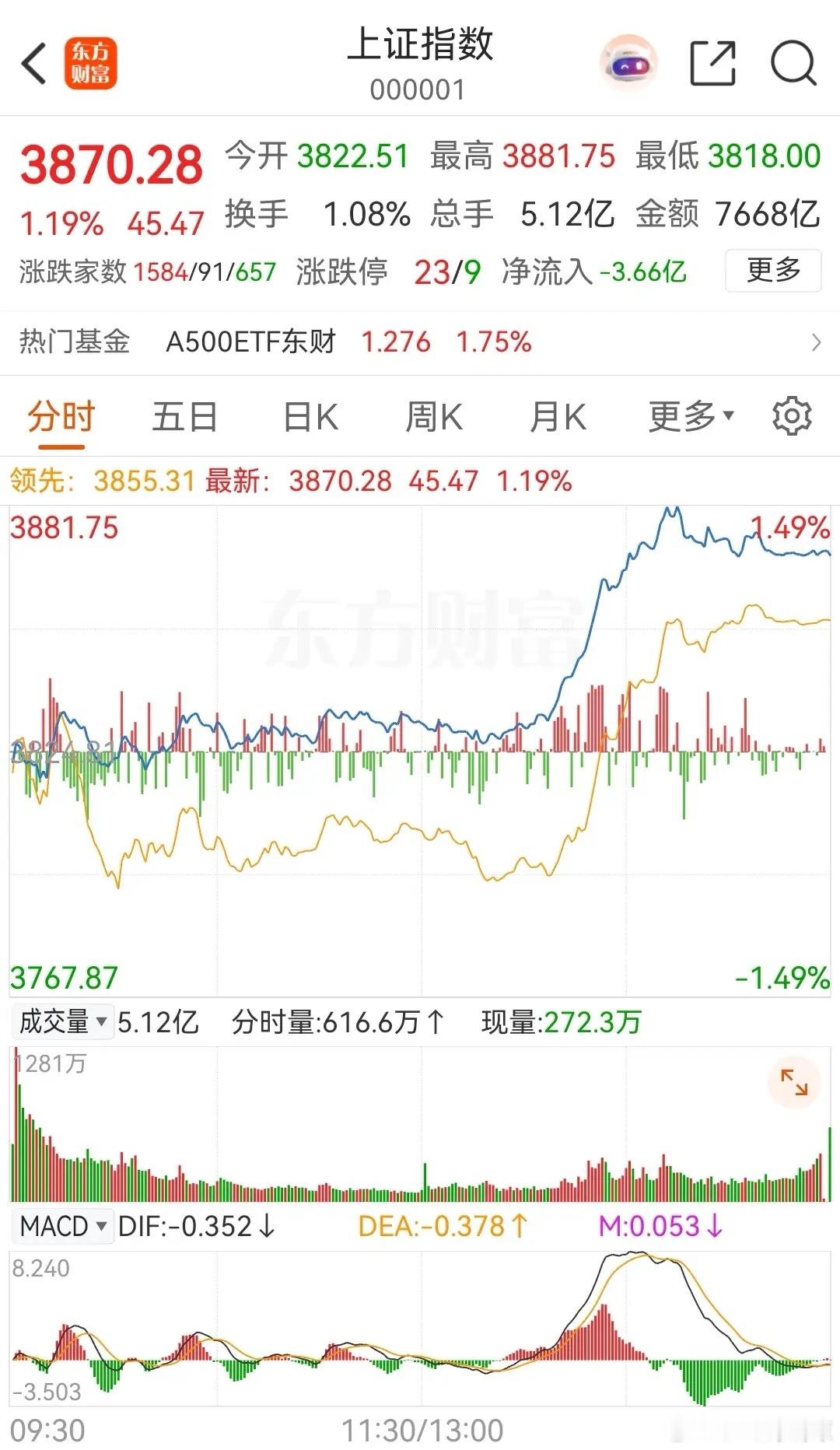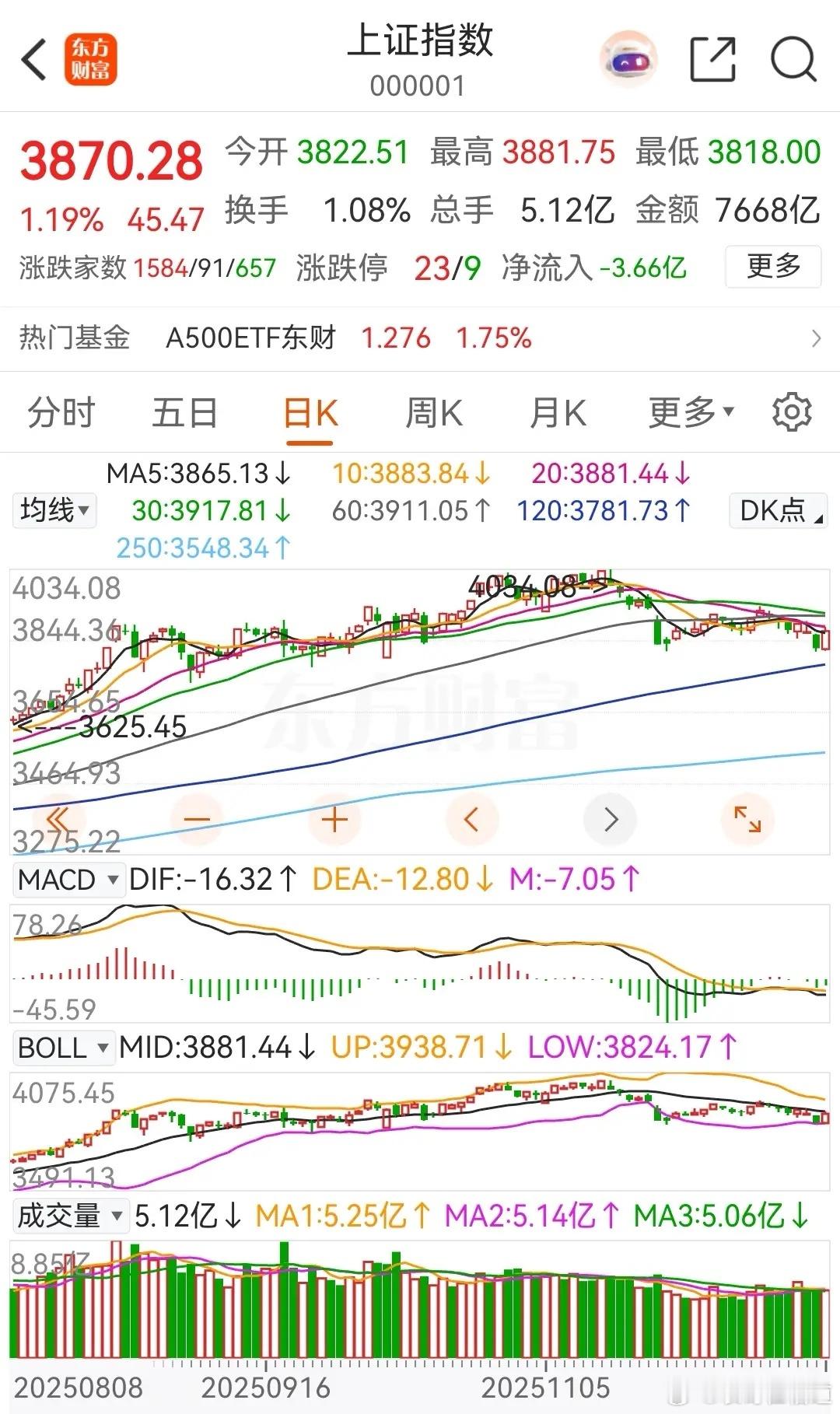 大盘下午快速拉升,一口气突破了3863点,最高冲到了3881点,随后逐渐震荡回落,最终收报于3870点。今天下午对指数贡献最大的板块非证券莫属了。当然,今天下午的拉升与午后的小樱花暂缓加息也有一定的关系,若明天正式宣布不加息,那么后面还会再涨。今天午后【高市政府政策小组委员:日本央行应避免过早加息】。截止收盘为止,沪指大涨1.19%,深证成指大涨2.40%,收报13224.51点;创指大涨 3.39%,收报3175.91点。沪深两市成交额达到18111亿,较昨日放量870亿元。对于大盘明天的走势,暂看将会收出一根带上下影线的阳线。具体的走势过程是,明天上午大盘将先冲高,然后小幅回踩;下午大盘将会再次拉升,尾盘时回压。当然了,这只是根据今天的收盘情况,暂时做的推测而已,仅供参考。