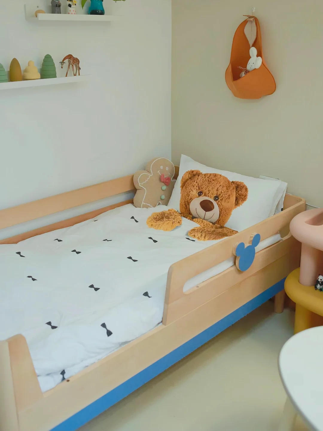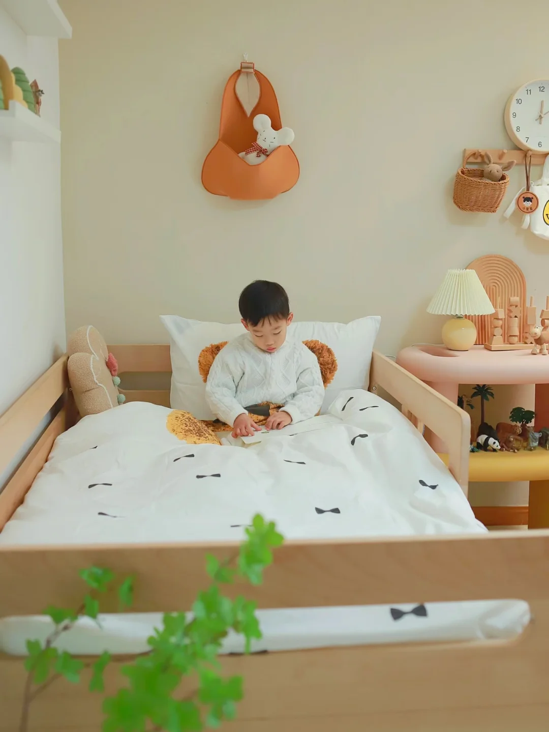很多人喜欢我们家的儿童床,这个床我还是很推荐的,首先很结实,其次是够大,睡一大一小完全没问题。我跟老公有时候会轮流陪儿子睡觉,免得让他觉得我们偏心妹妹😀小熊的床品我也很喜欢,敲萌哒💕
