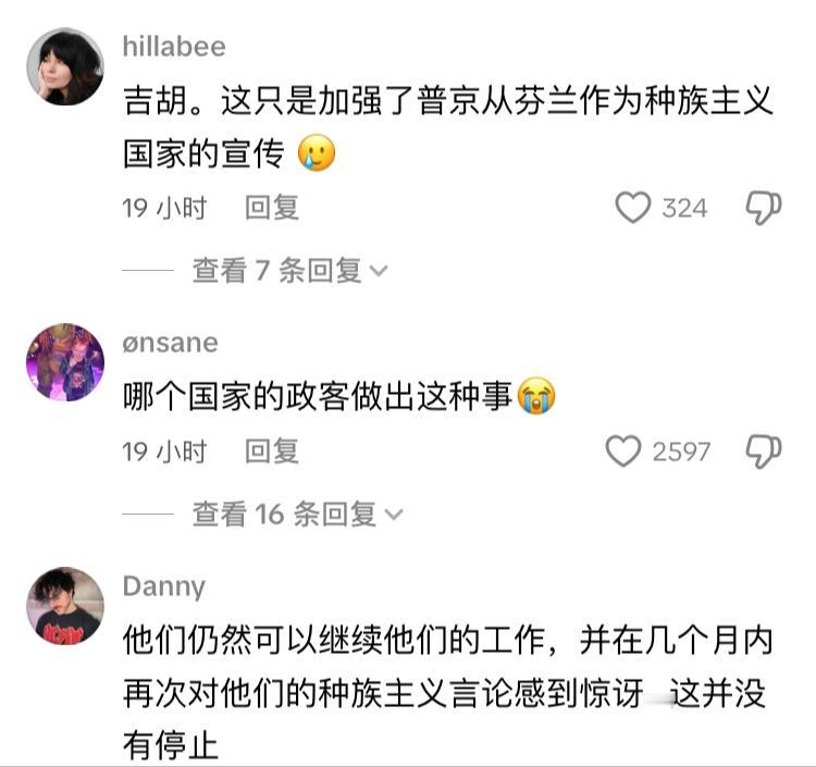 芬兰网友对政府议员的种族歧视表示愤怒,他们代表的是所有芬兰人,现在全世界都认为芬