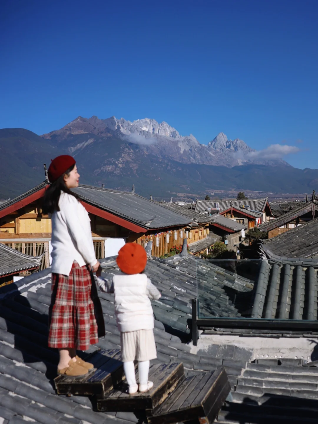 在房顶喝茶看雪山,视野超好,人均36r/人