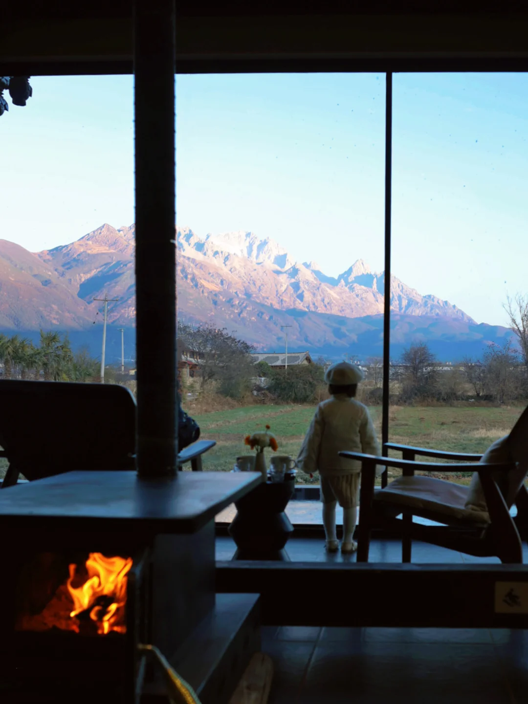 是我们这次入住的可以看雪山的民宿,就连房间也可以看到日照金山,体验感拉满
