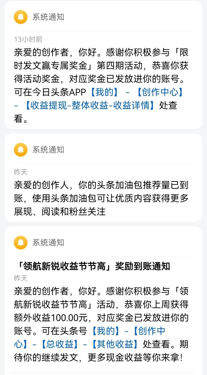 领航新锐收益节节高这个活动确实调动了我的创作积极性,上周活动额外奖励605元已经到账,还有两千的流量加油包。这样算下来的话,微头条的综合单价都突破1元每千次了,这周继续加油干,争取单周阅读量再破50万!