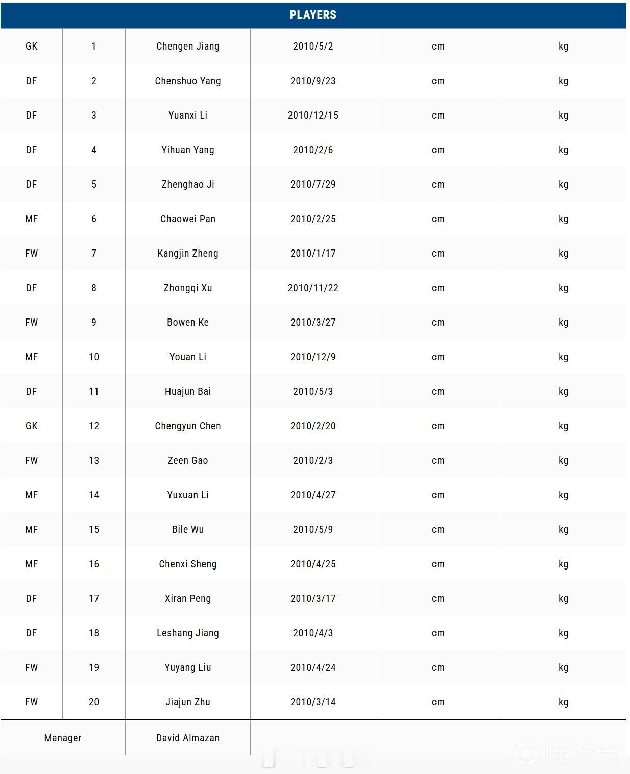 东亚足联官方公布中国U15男足东亚杯名单,山东鲁能泰山足球学校:杨宸硕、冀政浩、彭熙然、江乐上、潘朝伟五人入选。自由橙山东泰山
