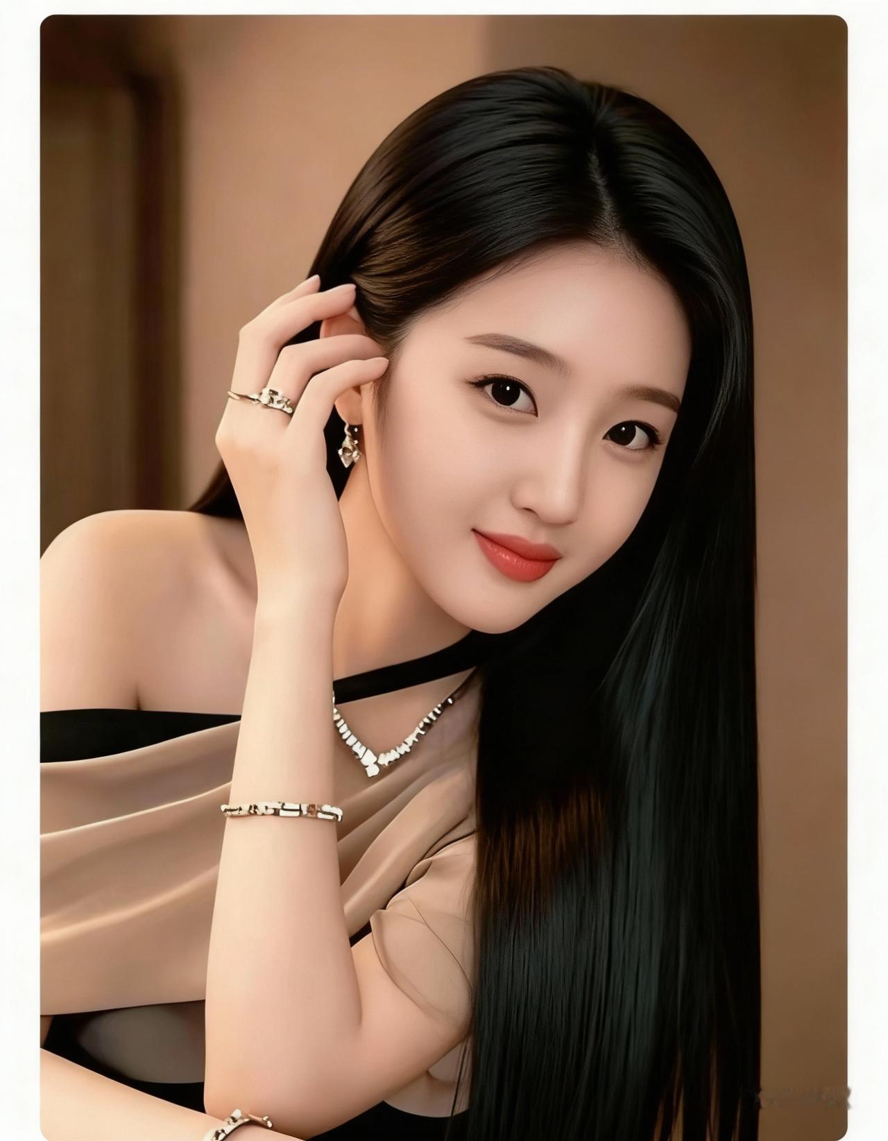优雅黑发美人,温柔微笑,时尚珠宝点缀,尽显魅力!