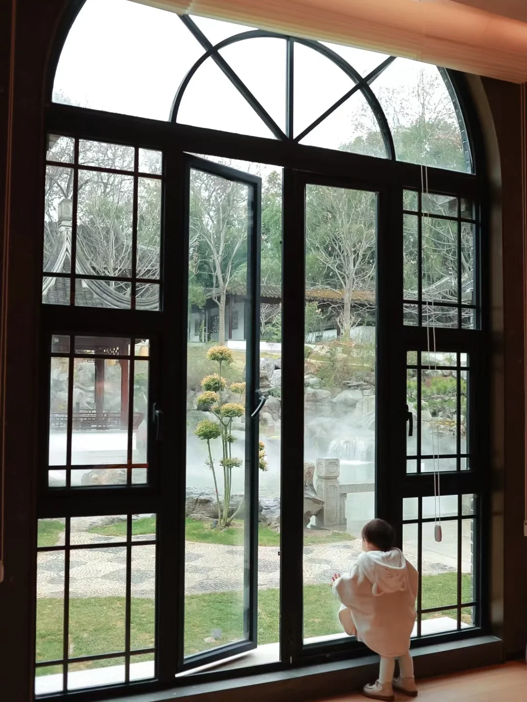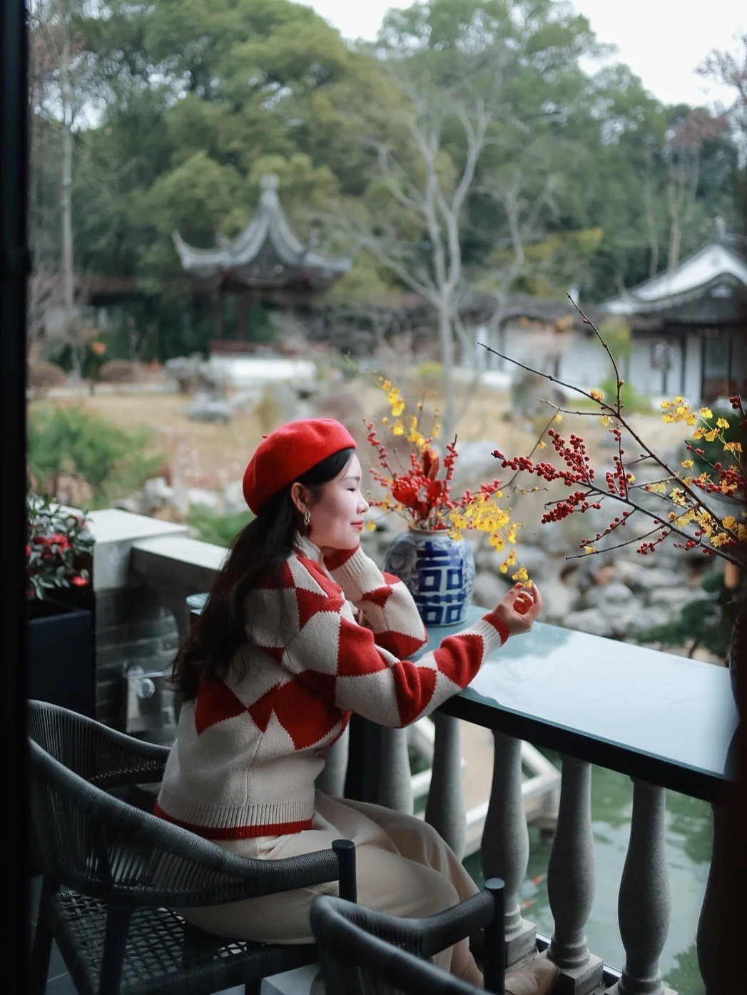 3️⃣二楼的阳台也很出片,人坐在阳台凳子上,拍照的人在房间里面需要站在板凳上,好机位俯拍,这样才能拍到比较多的庭院景观🎋🍃