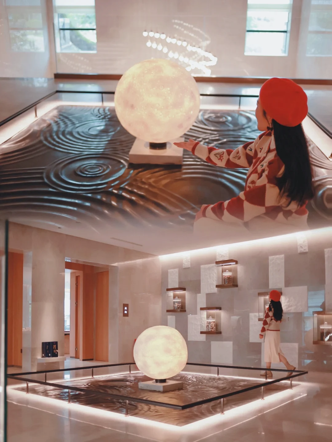 4️⃣二楼中庭的球前面,拍背影,侧面走动都还不错♥️