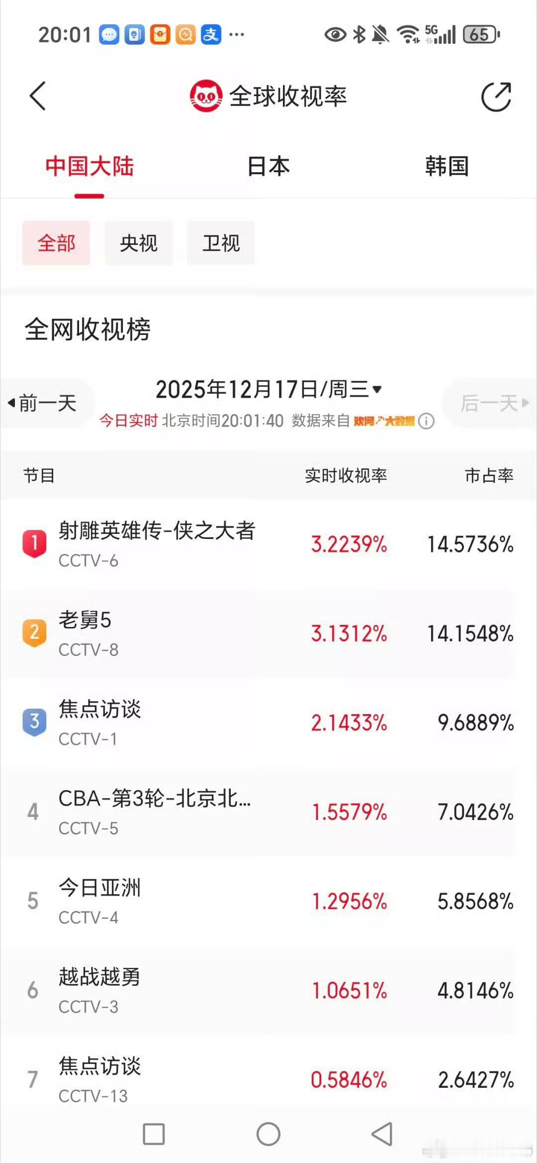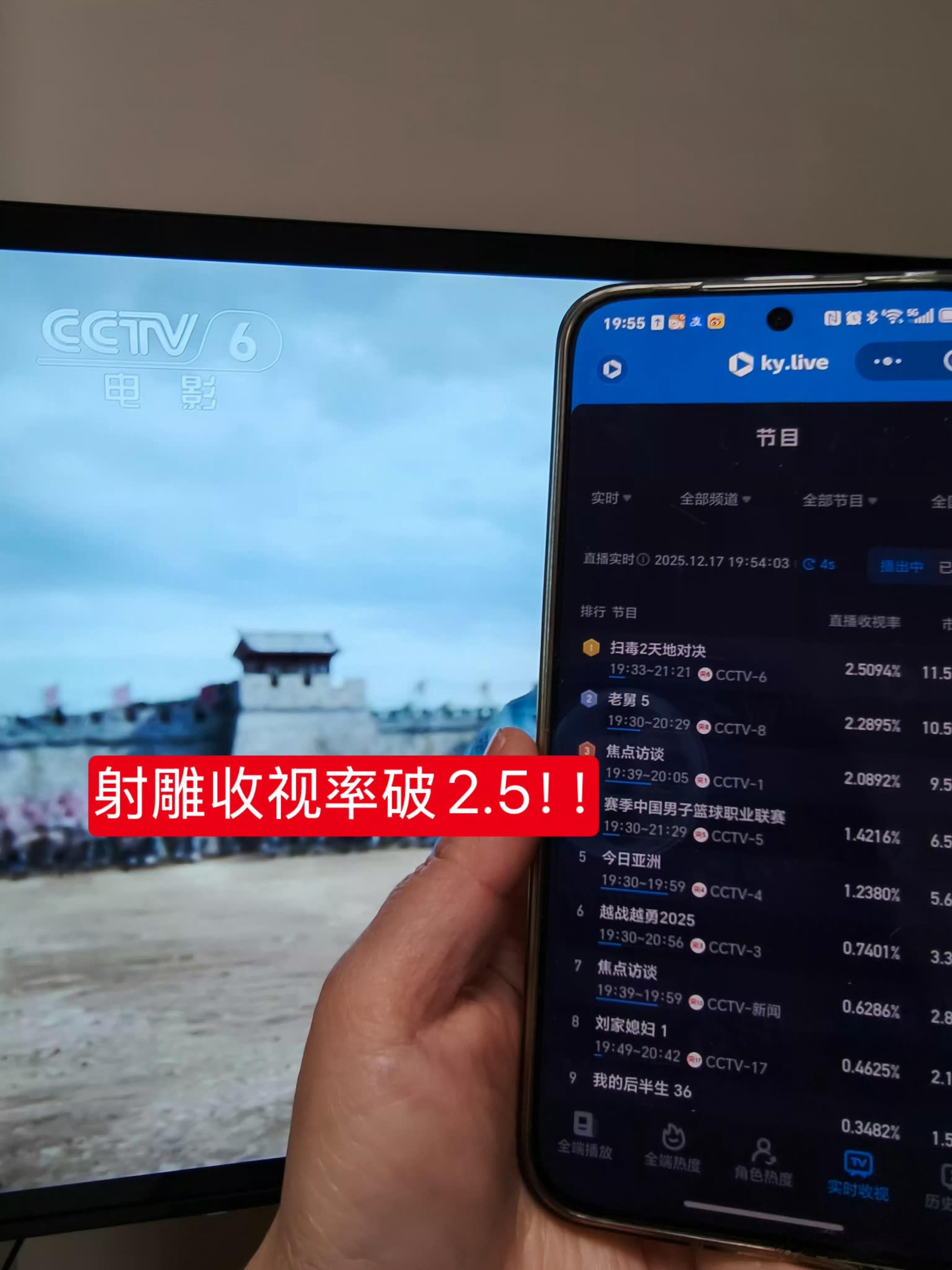 肖战《射雕英雄传侠之大者》今天在CCTV6播出,收视率破了2.6。但酷云把射雕打