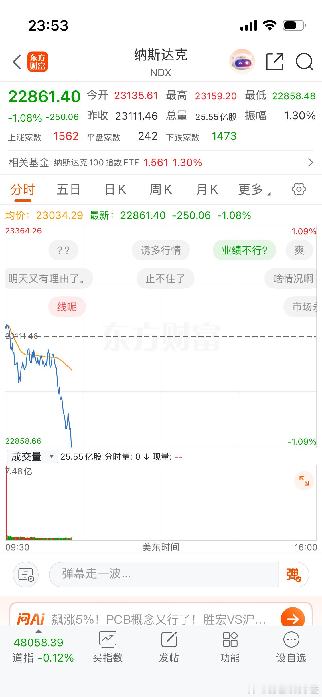 晚安。美股突然就崩了。明天看A股表演了…
