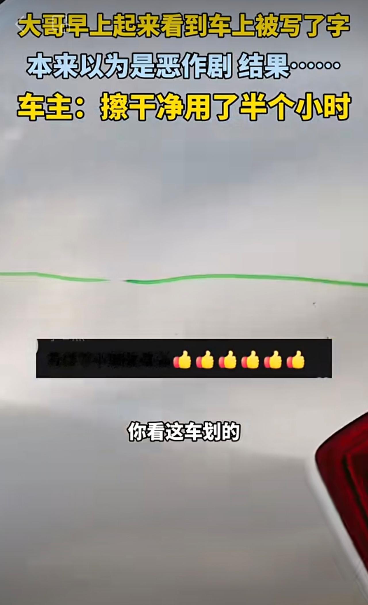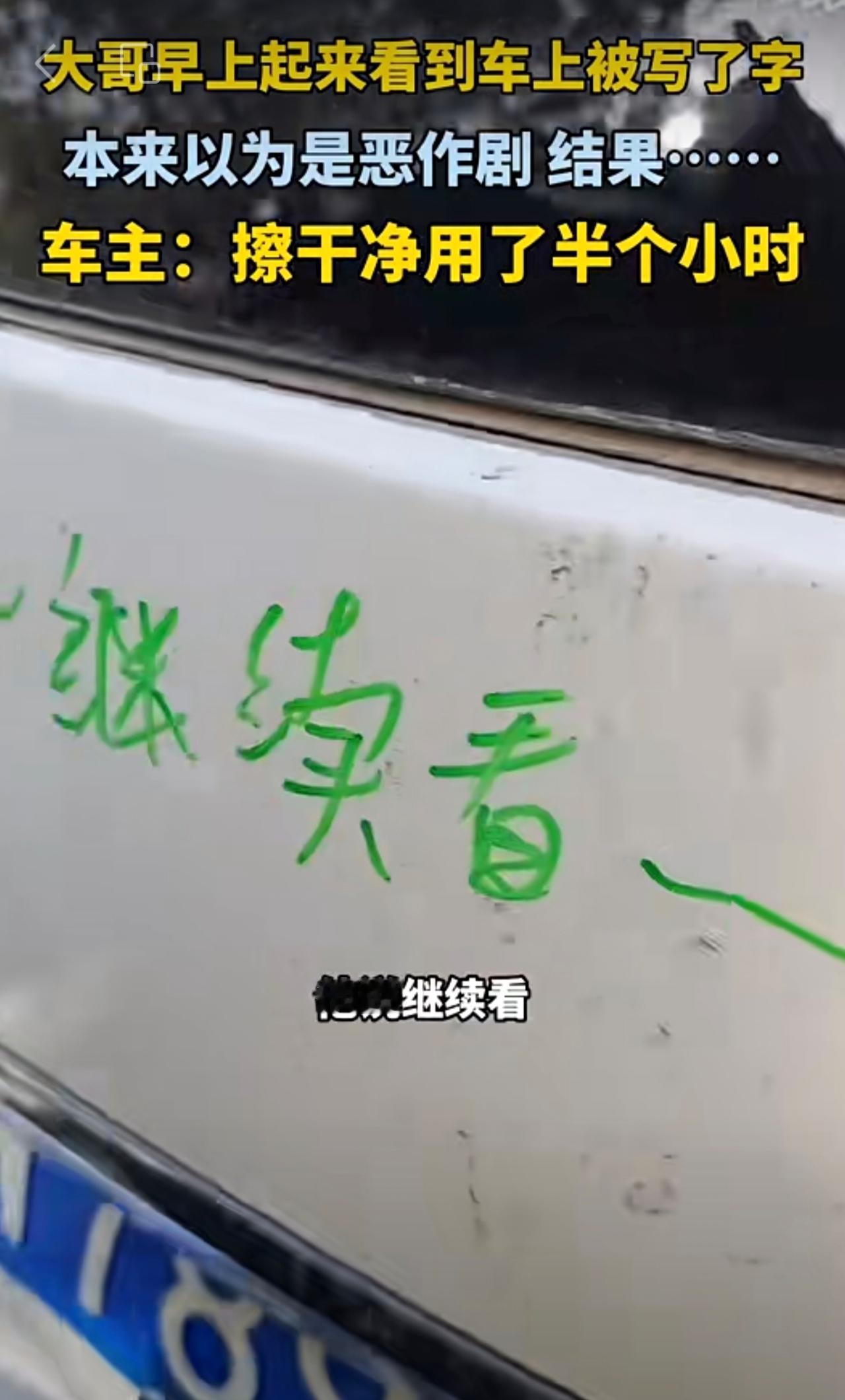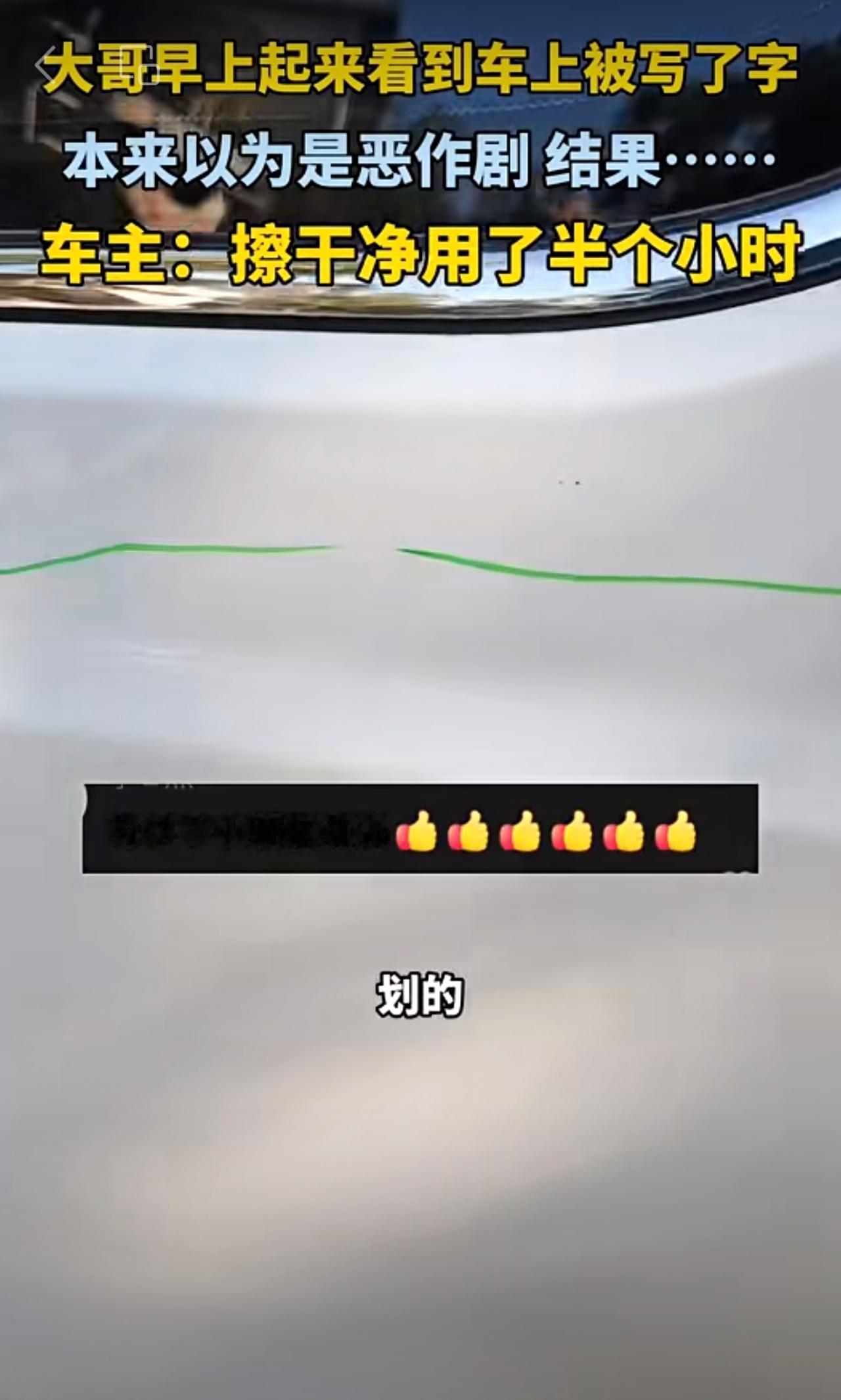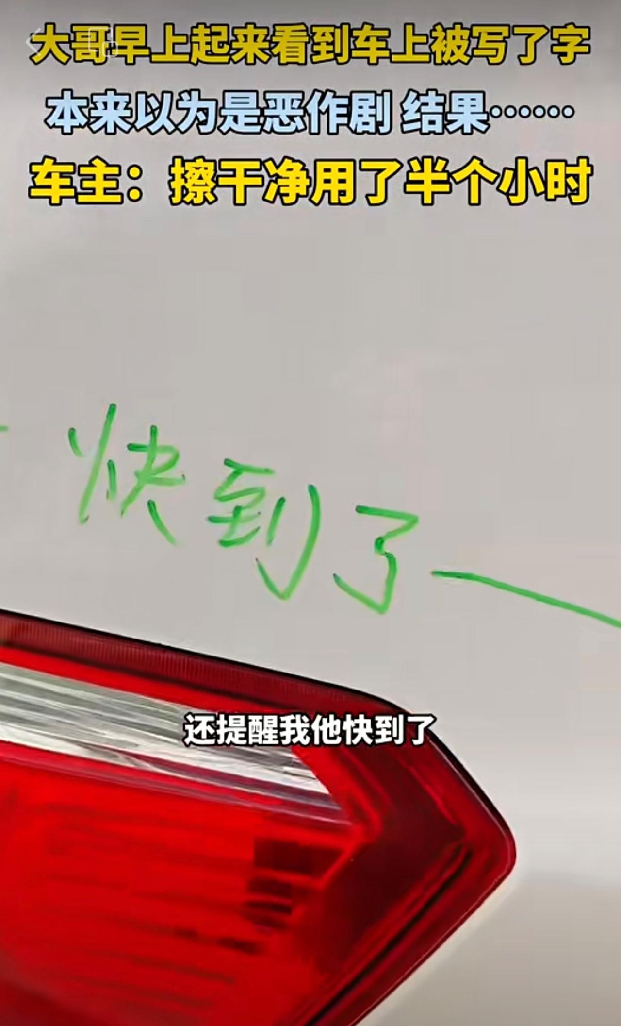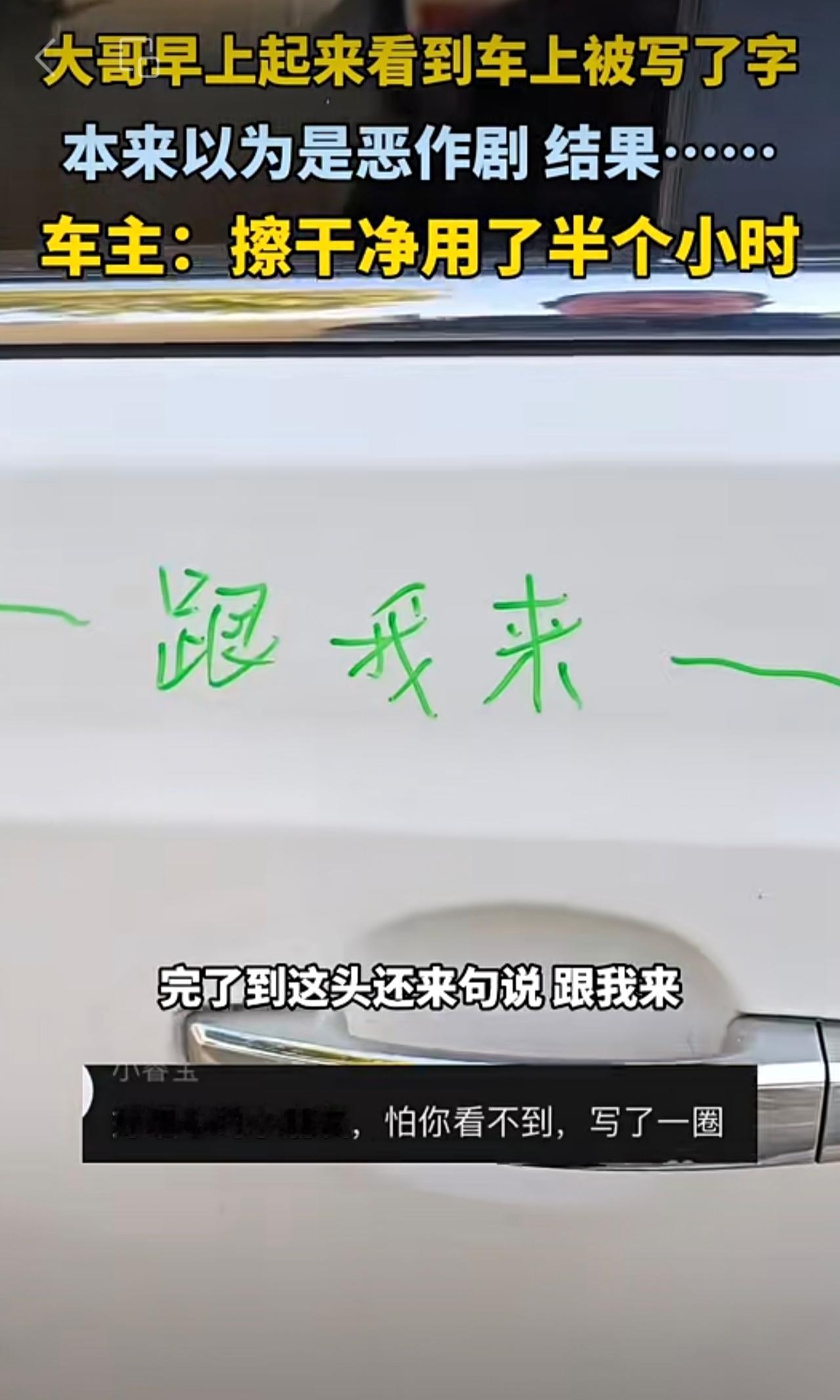 大哥早上起来看到车上被写上了字,本来以为是恶作剧,结果……
