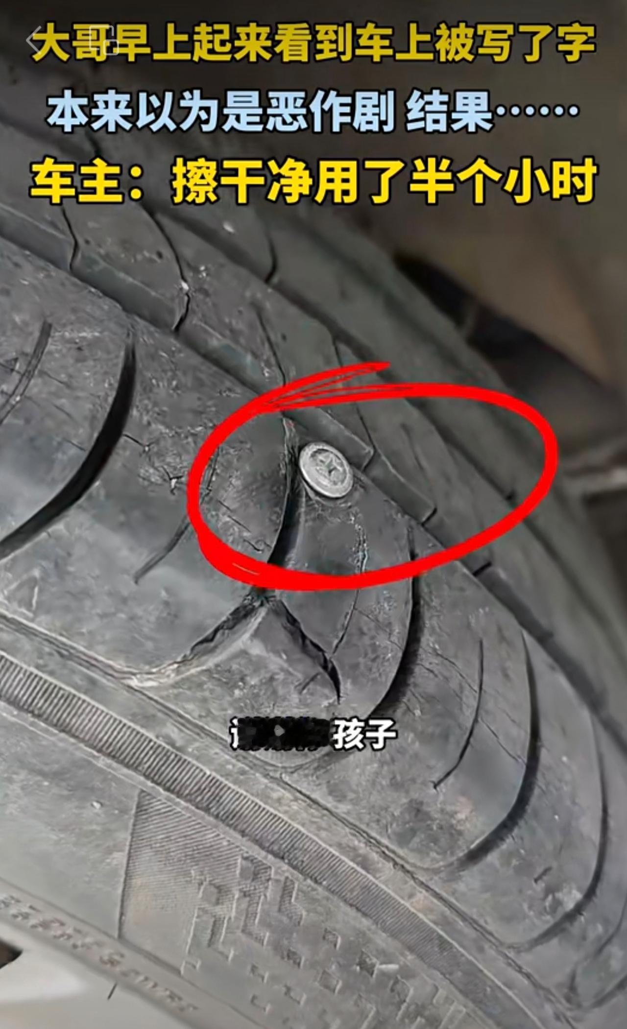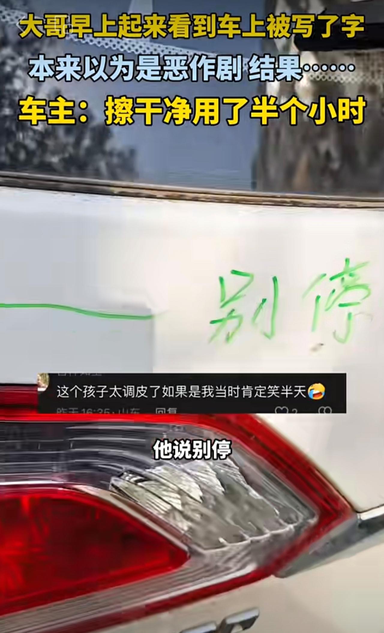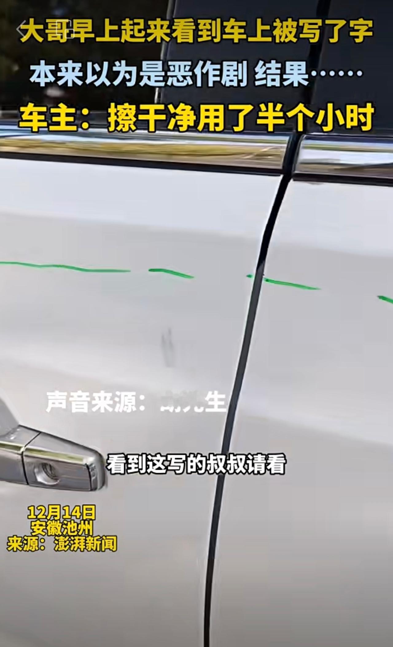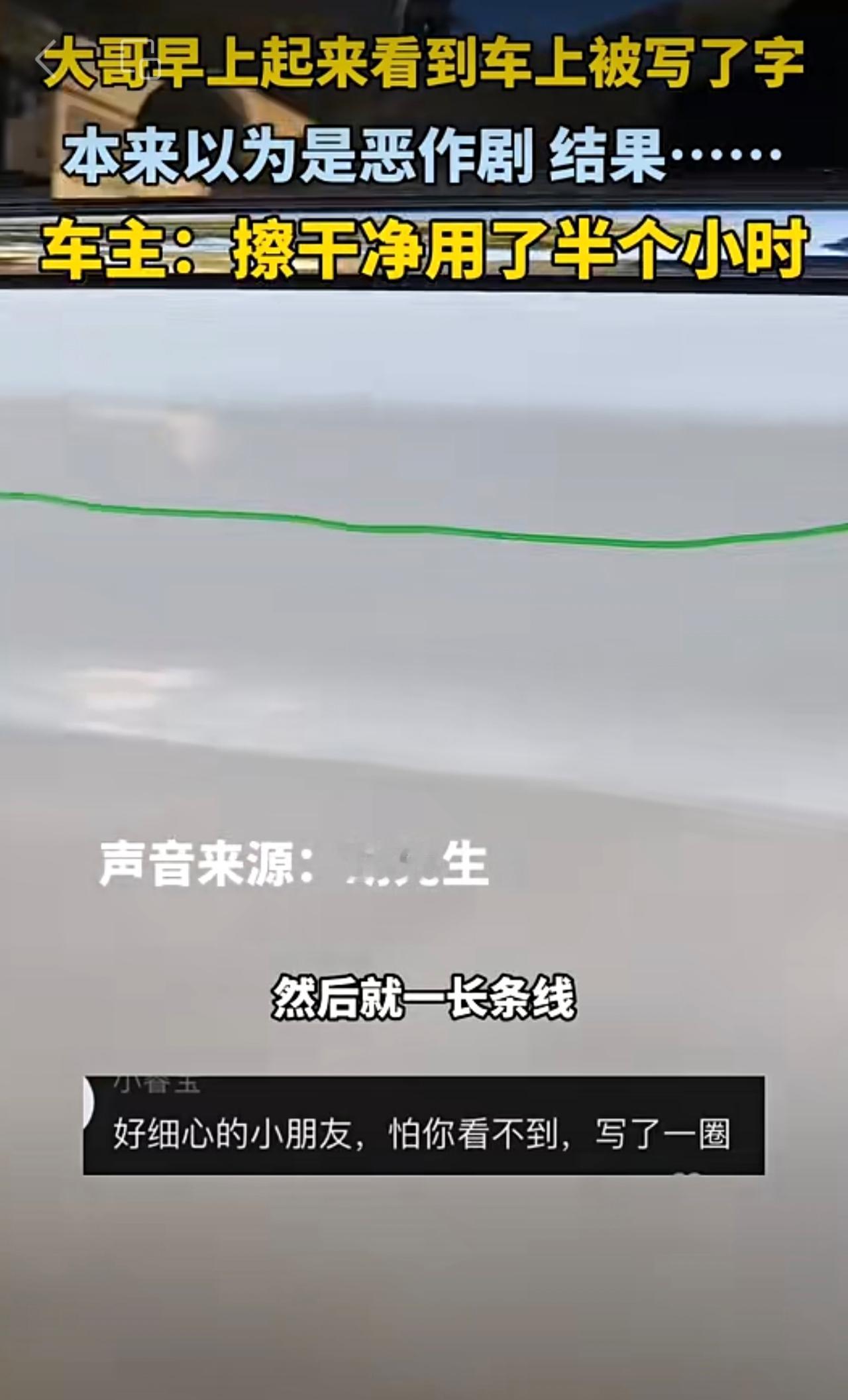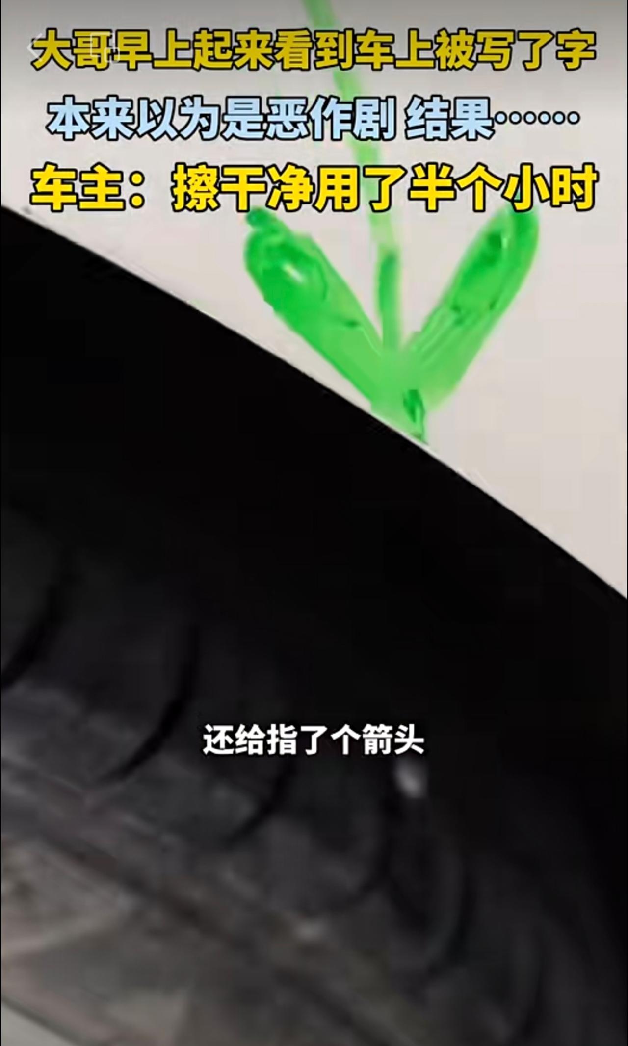 大哥早上起来看到车上被写上了字,本来以为是恶作剧,结果……
