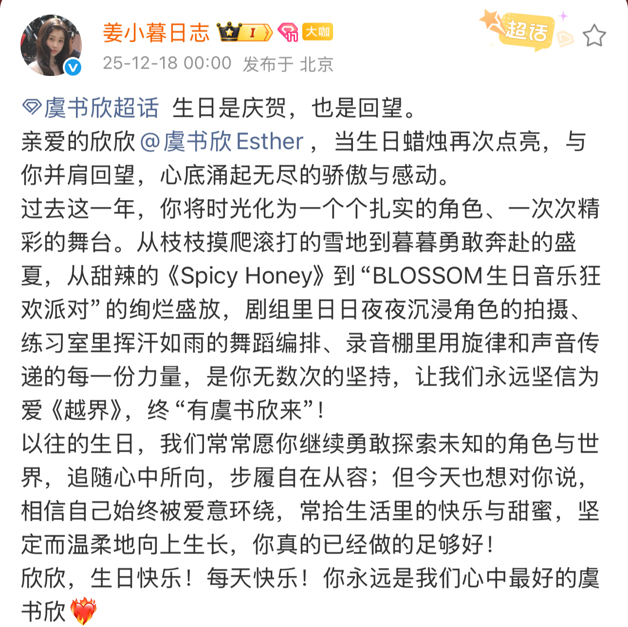 虞书欣从枝枝到暮暮虞书欣30岁生日手捧蛋糕照 虞书欣从枝枝到暮暮,是属于虞书欣30岁生日手捧蛋糕照,满分美貌的小虞生日快乐,继续期待和你的姜暮的故事见面啦!
